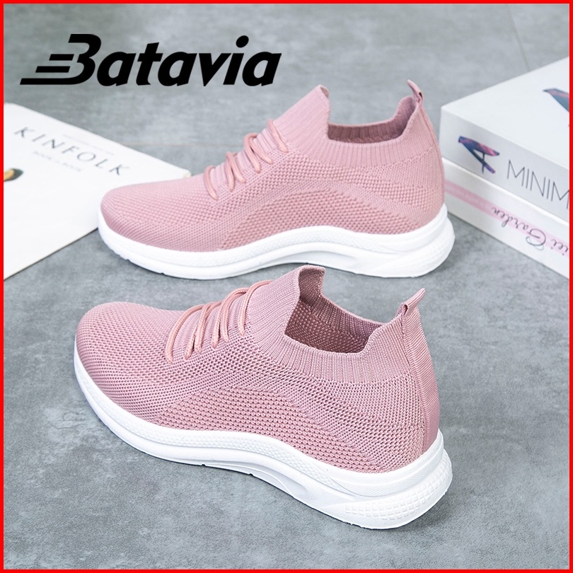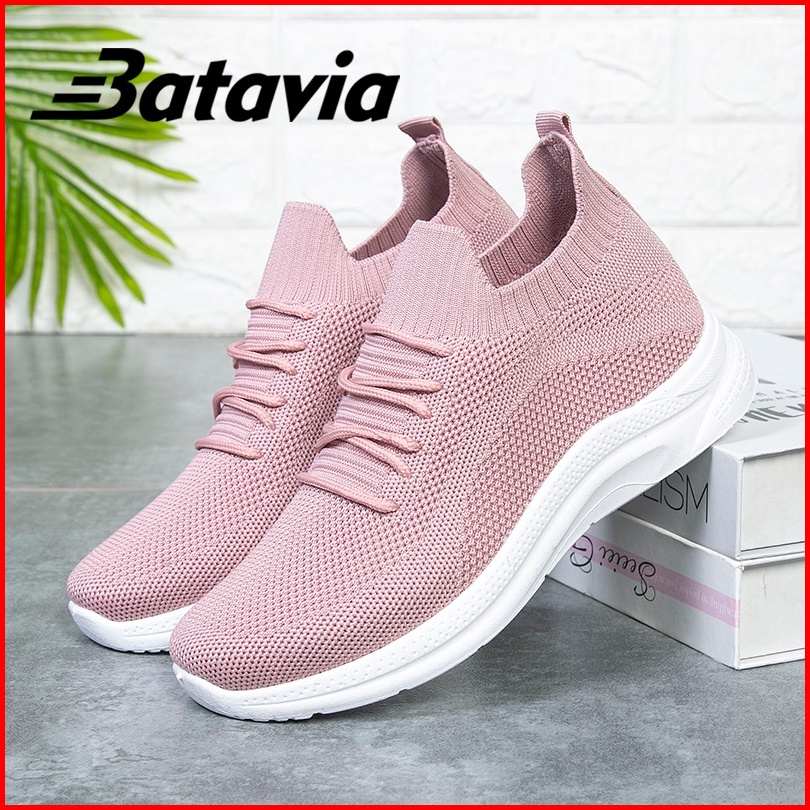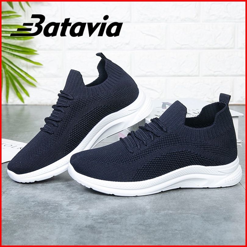 Batavia Grosir Sepatu Kanvas Wanita Rajut Sepatu Wanita Sepatu Tanpa Tali Hitam Sneakers P4