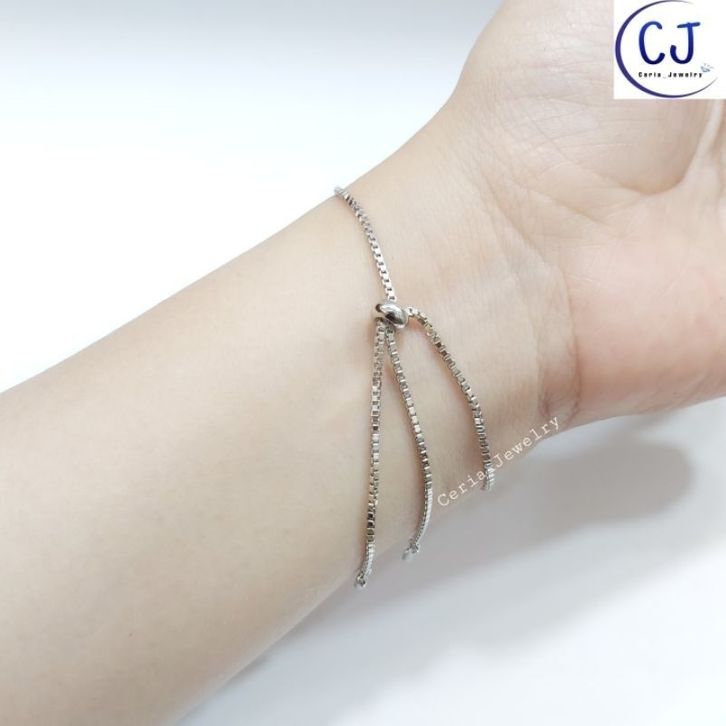 Gelangg Perak Asli Silver Wanita 925 Lapis Ems Putih Asli Model Gelag Serut Aurel Fuji Nagita - Gelag Serut Perak Asli