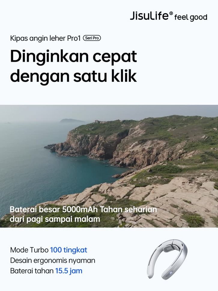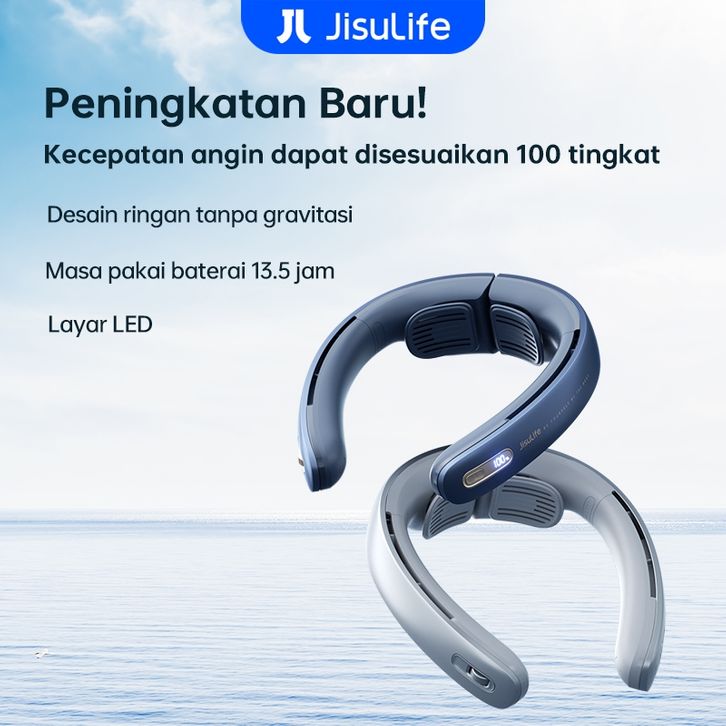 Jisulife Kipas Leher Portable Desain Tanpa Bilah 100 Tingkat Layar Led Baterai 5000Mah