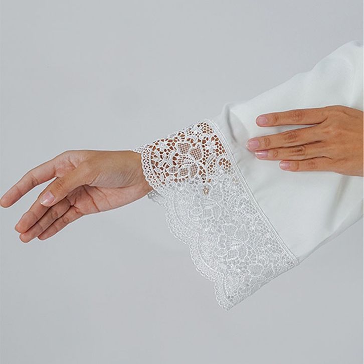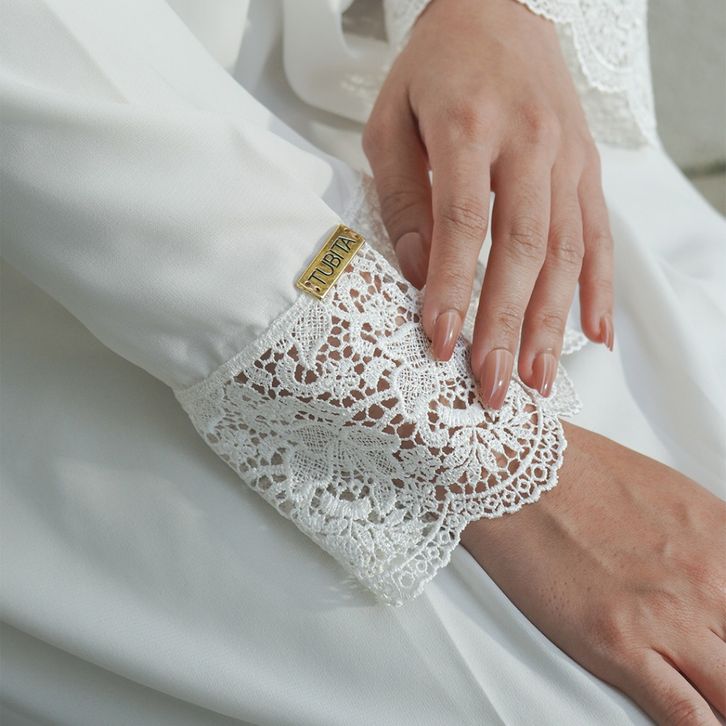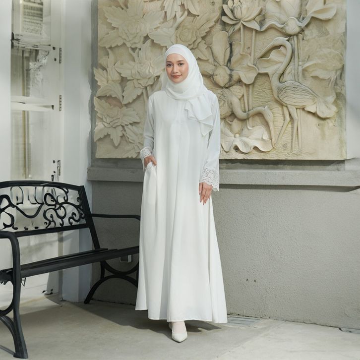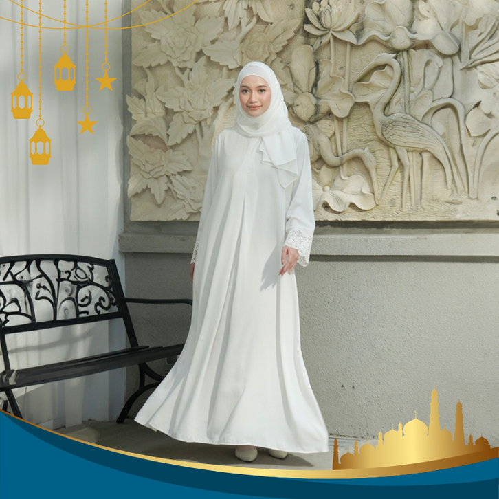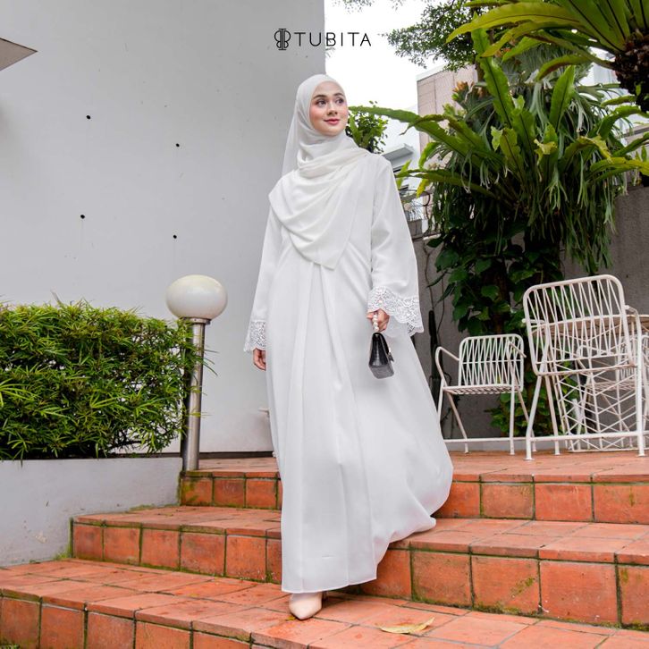 GAMIS LEBARAN 2025 TUBITA - Meena Lace Abaya Umroh Broken White Gamis Haji dan Umroh Polos Wanita Elegan
