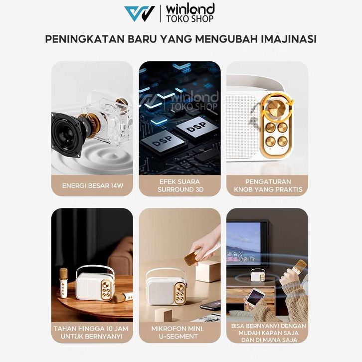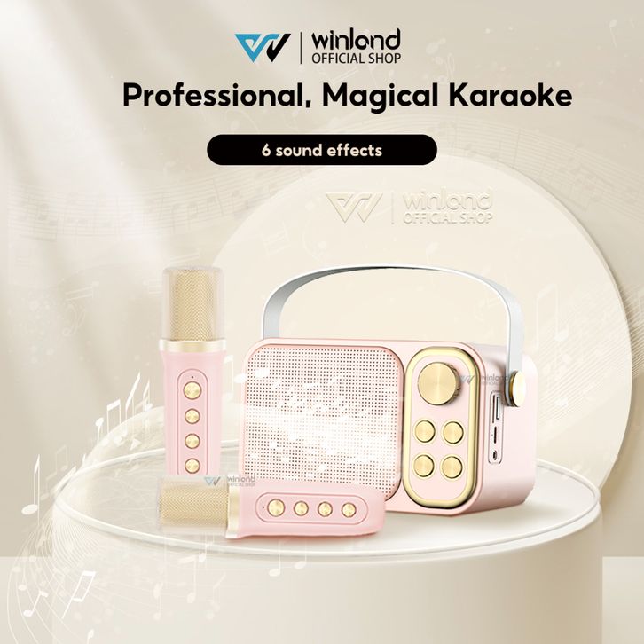 Winland Speaker Bluetooth Karaoke 1 set 2 Wireless Microphone Cute Wireless Lucu Portabel Luar Ruangan Speaker