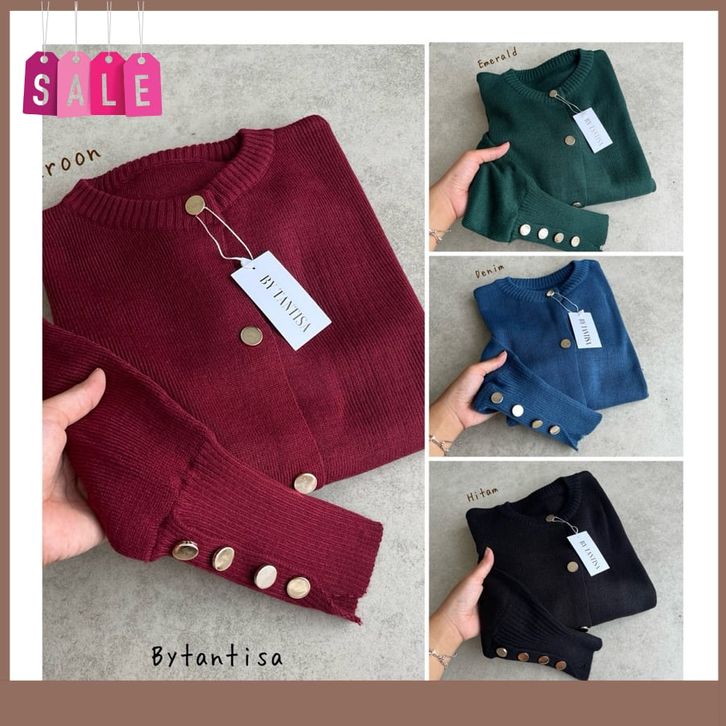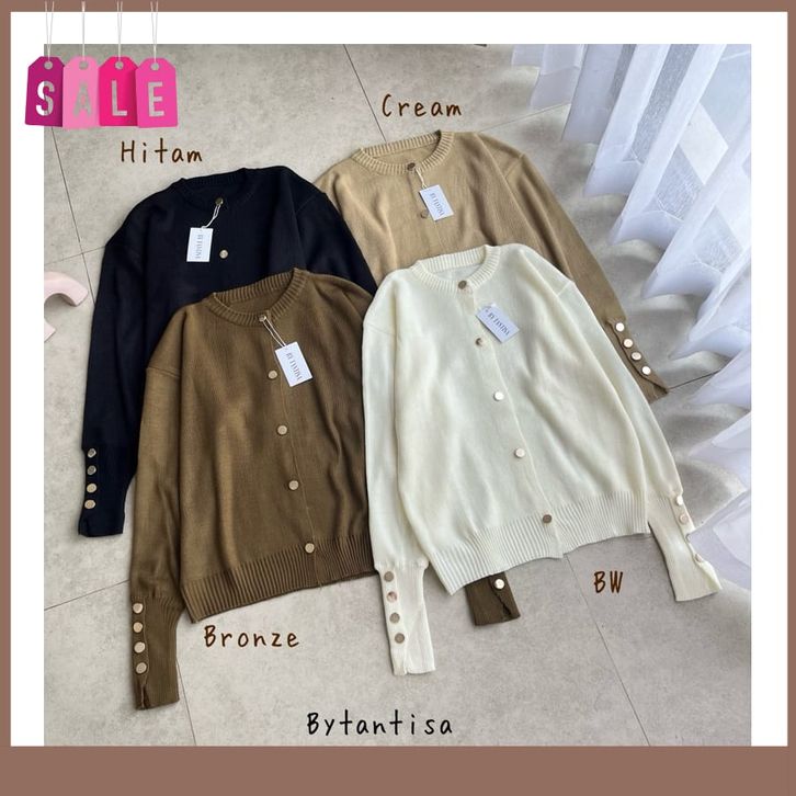 Bytantisa Cardigan Rajut Polos Viya LenBytantisa Cardigan Rajut Polos Viya Lengan Kancing Bagan Kancing Bahan Lembut