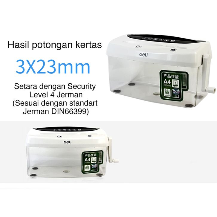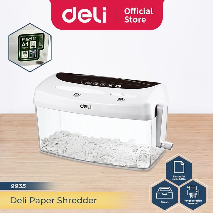 Deli Paper Shredder Penghancur Kertas Manual A4 Kapasitas 1 Lembar Uk 4 Liter Desain Modern 9935