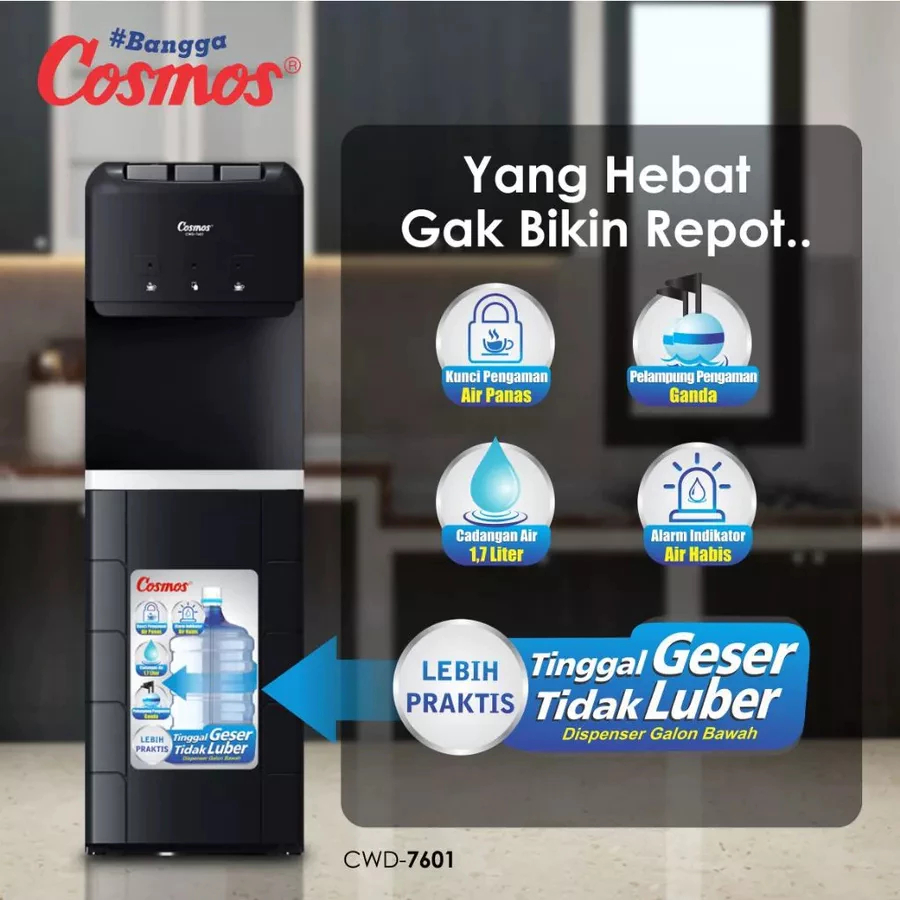 DISPENSER PANAS DINGIN ES COSMOS GALON BAWAH COLD NORMAL HOT LOW WATT CWD 7601 TEMPAT GALON TERMURAH TANPA DP BUNGA 0
