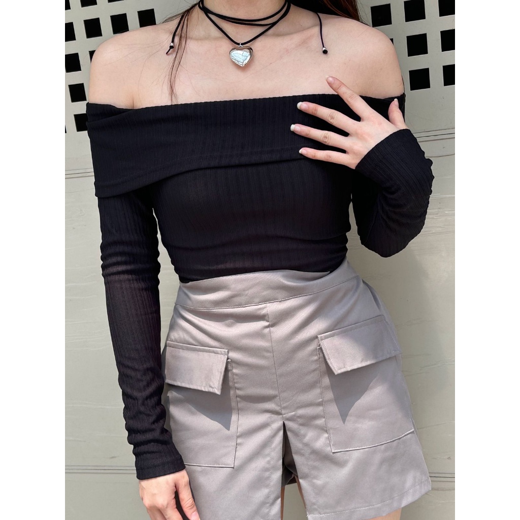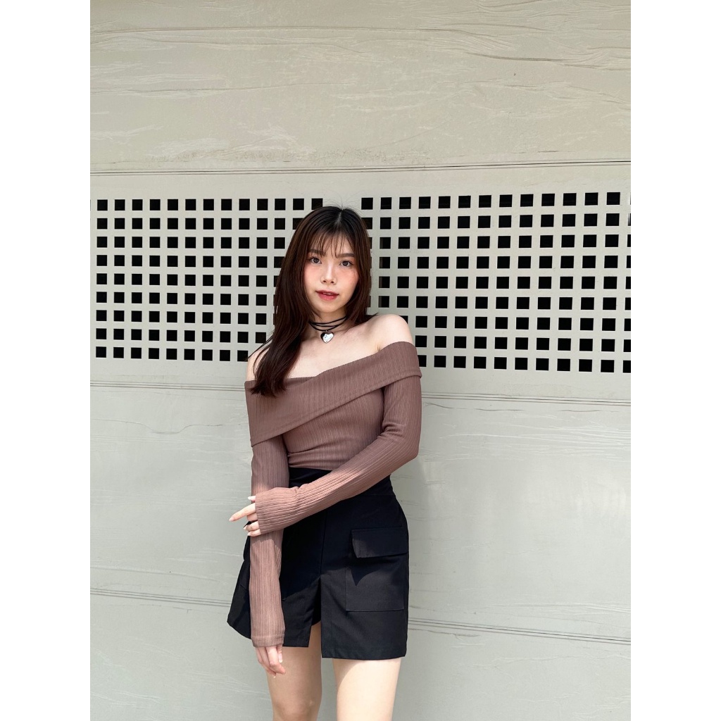 (FLASH SALE) Sabrina Rib Top | One Shoulder Wanita - Sabrina Wanita - Lengan Panjang - Blouse Atasan Wanita 127