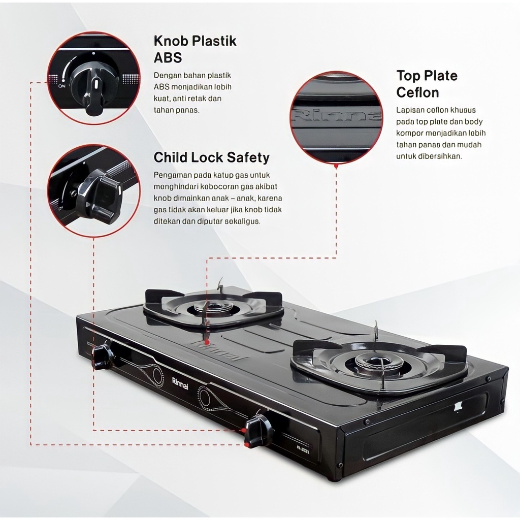Rinnai RI-202S Kompor Gas 2 Tungku Rinnai RI 202 S - Kompor Gas 1 Tungku Rinnai RI 201 S