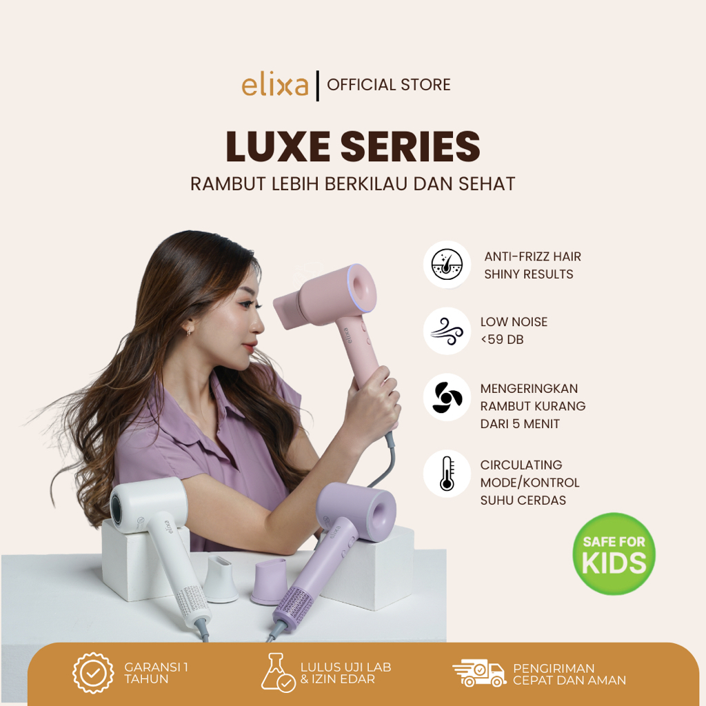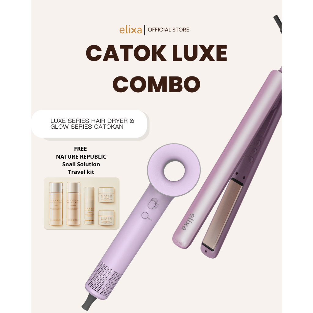 Elixa Bundling Hairdryer Luxe Series Purple + Catokan Rambut 2in1 Rose Gold