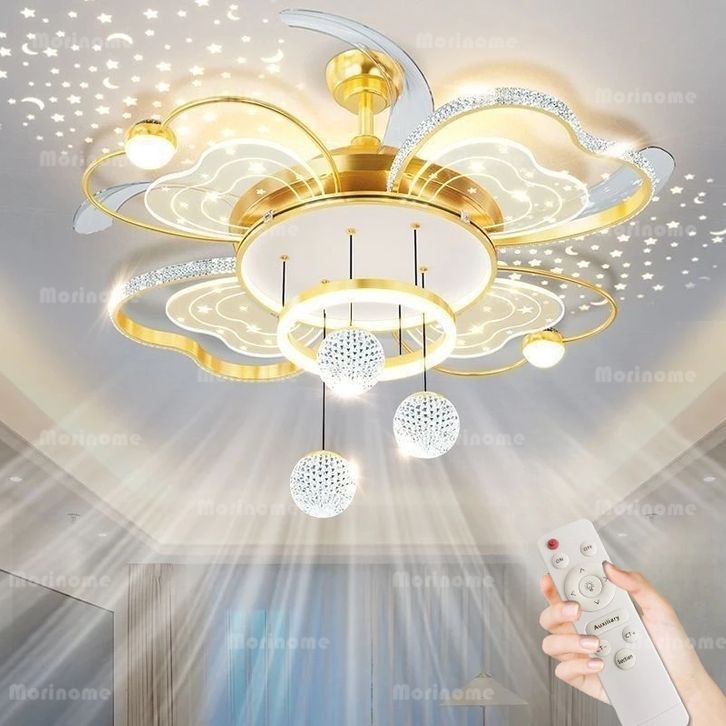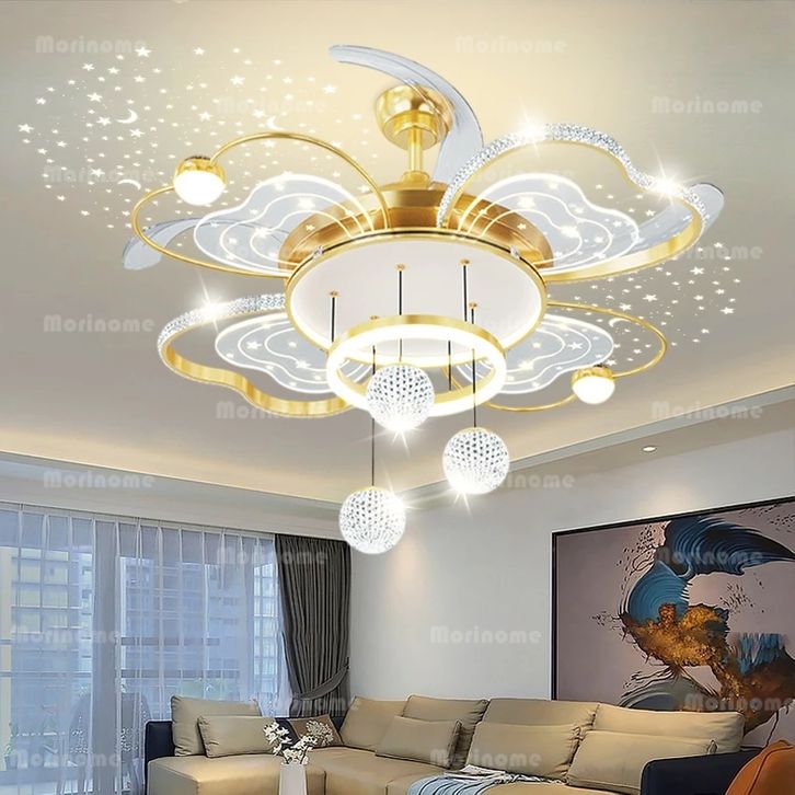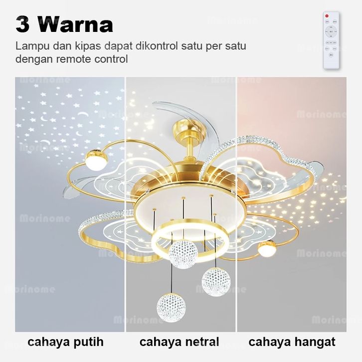 Lampu Kipas Angin Ruang Tamu 100cm Minimalis Lampu Gantung Kipas Minimalis Modern Remote LED 3 Warna Untuk Ruang