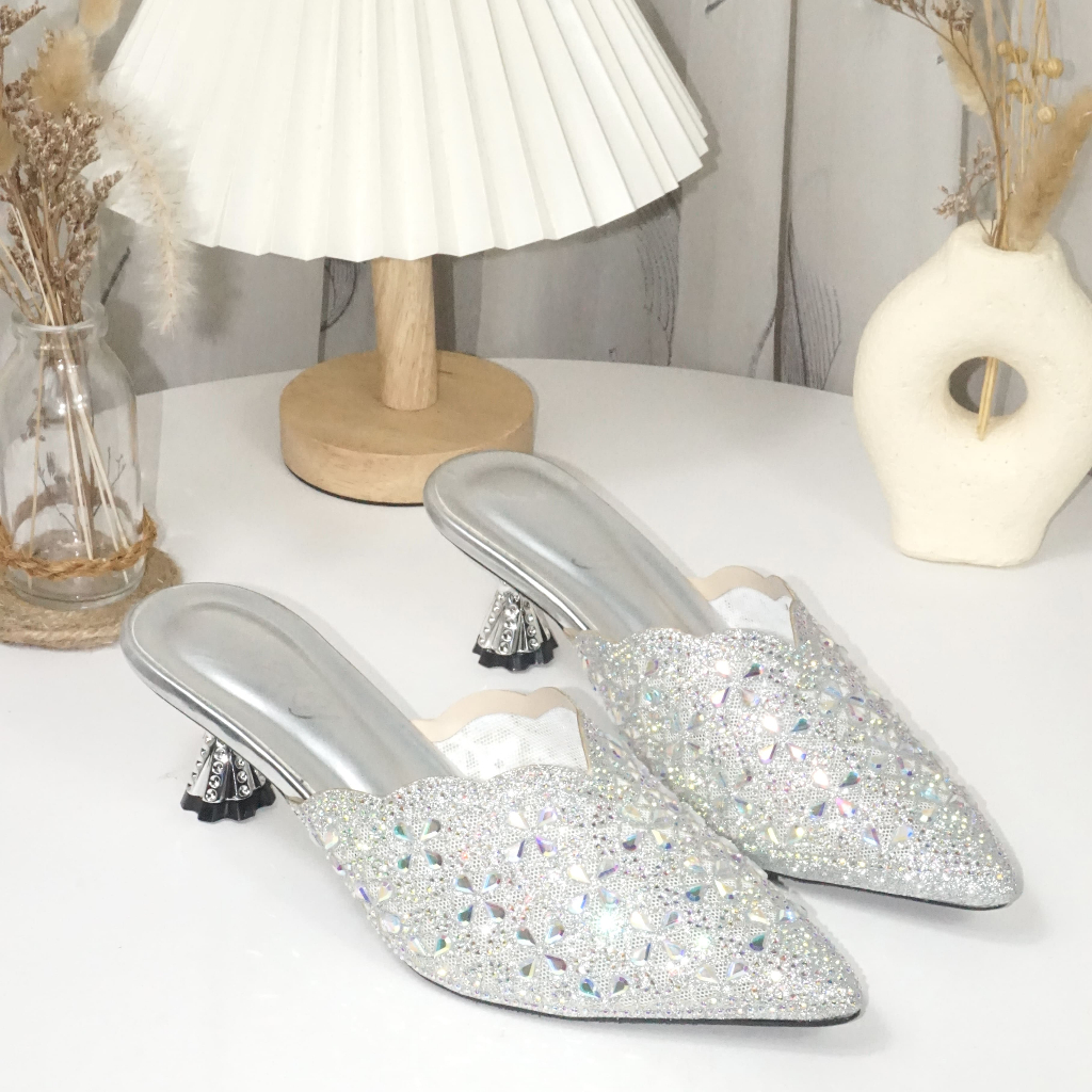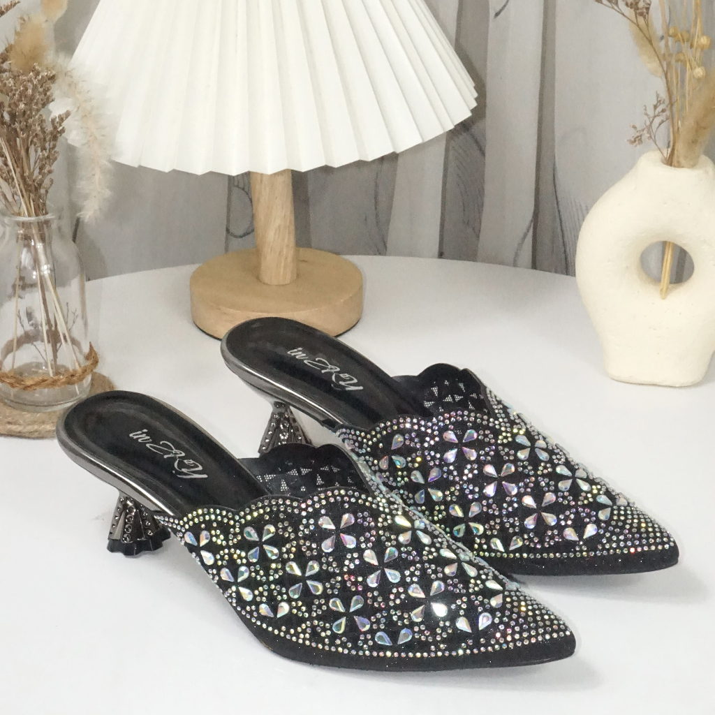 [PROMO] Inzky Rachel Mule Pesta Wanita / Sepatu Pernikahan Wanita Mewah Hak 5 cm
