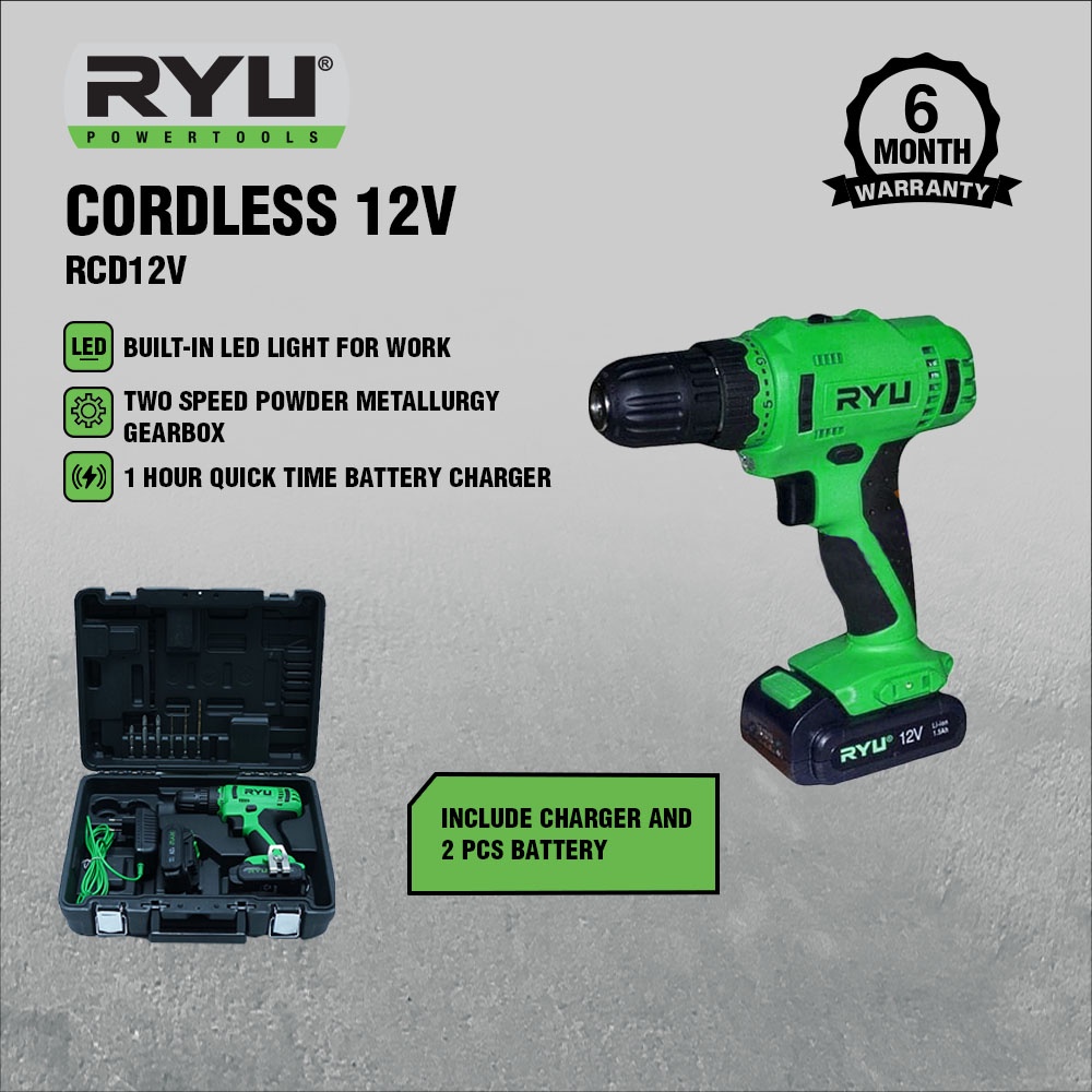 Ryu Cordless 12 volt rcd12v - mesin bor baterai 12 - perkakas