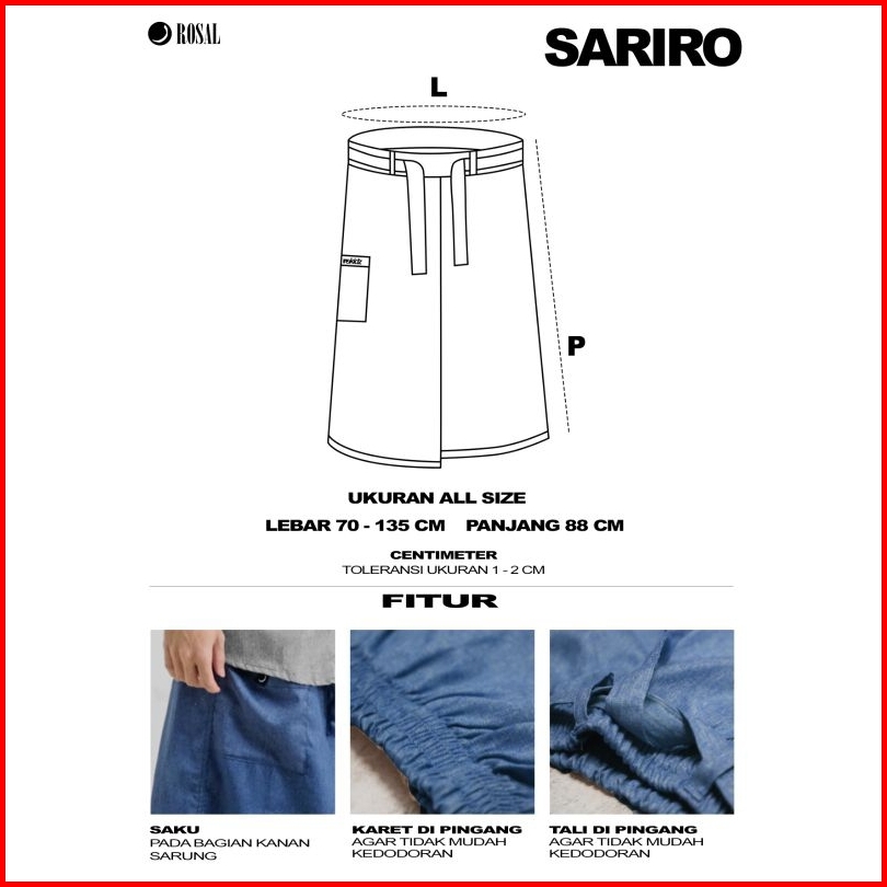 Sarung Rosal Pria Dewasa Bahan Katun Madinah Premium Allsize Lebar 70 - 135 Cm Celana Sarung Intan Sariro Sarung Hitam P