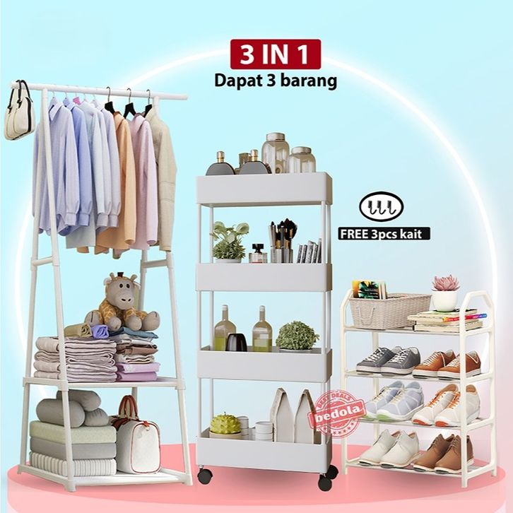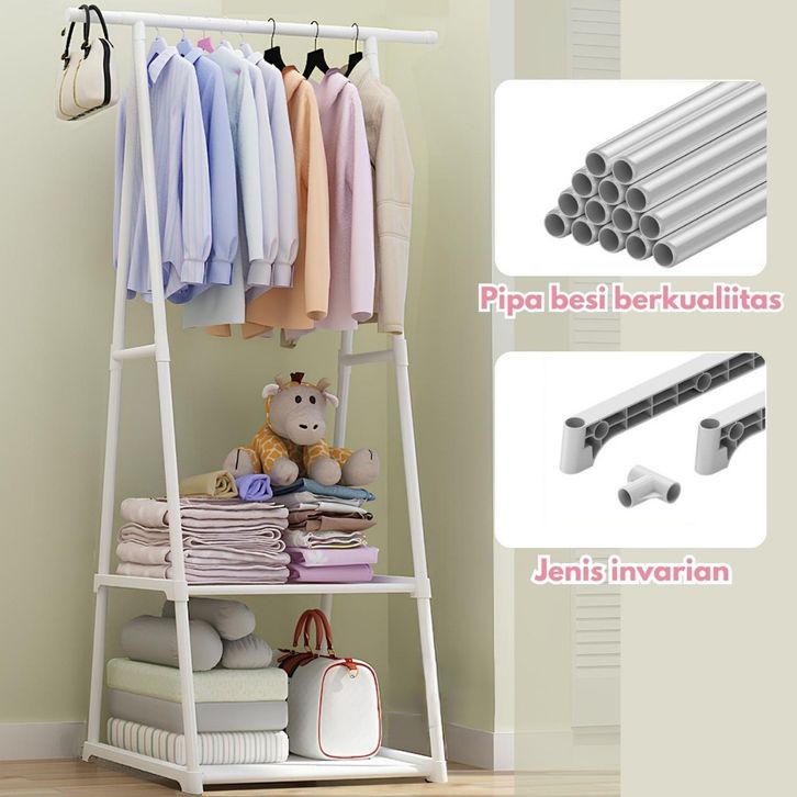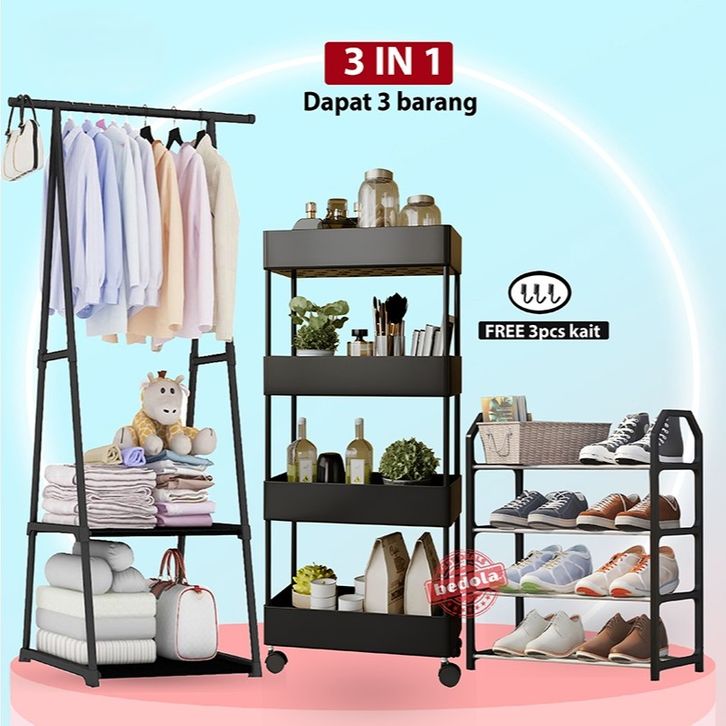 TRIANGLE RAK BAJU COMBO 3 IN 1 / TRIANGLE RAK BAJU MINIMALIS / RAK SUSUN SERBAGUNA 4 TINGKAT /RAK SEPATU 4 TINGKAT KOKOH