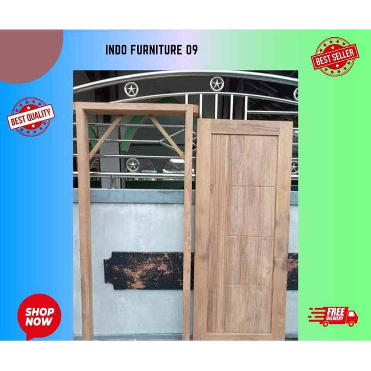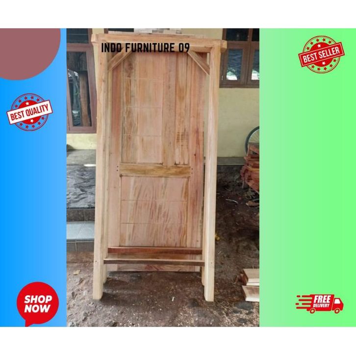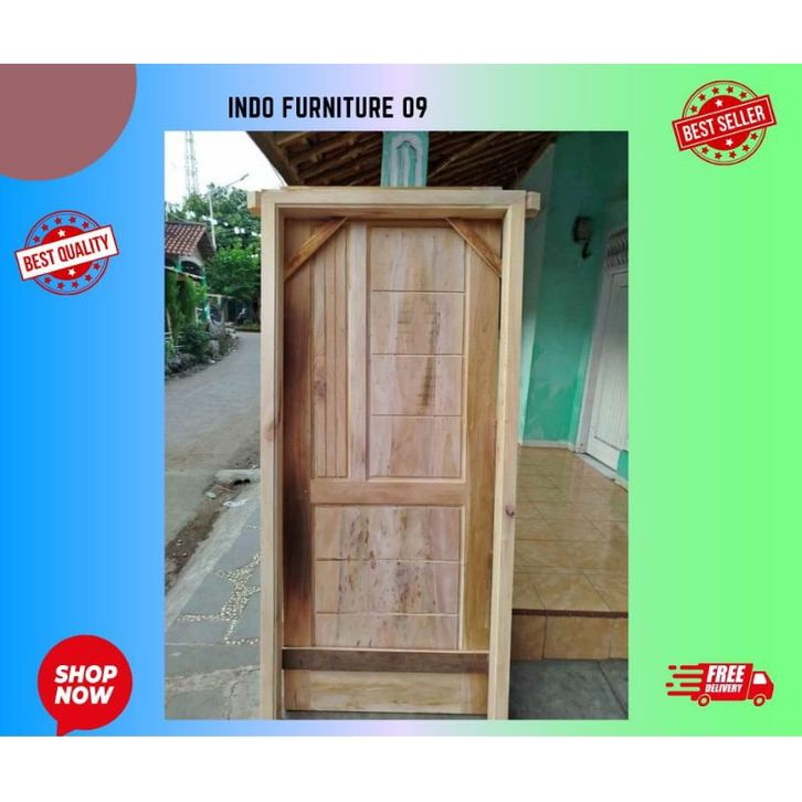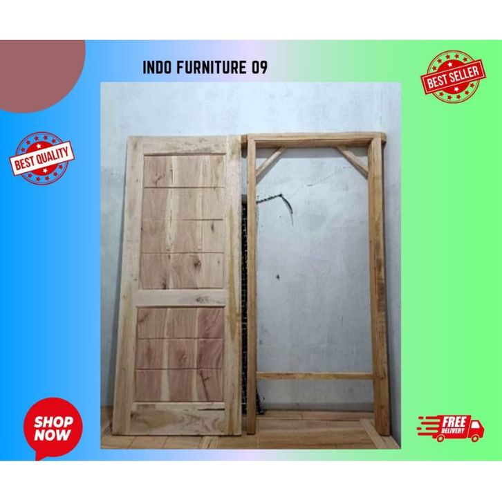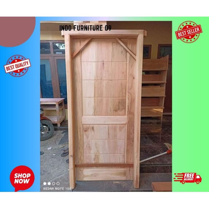 Ready stock daun pintu+kusen 1set pintu rumah kayu mahoni ukuran pintu 200x80