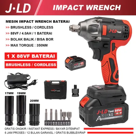 JLD mesin bor impact baterai 88VF impact wrench brushless bolak balik 13mm impek pembuka baut impek baterai CTV bor temb