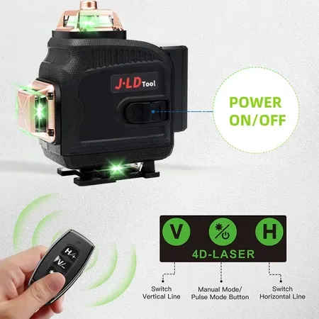 JLD LASER LEVEL 16 Garis 4D Tingkat Self leveling 360 untuk Ubin Lantai Konstruksi dan Langit-langit Braket Magnetik Bid