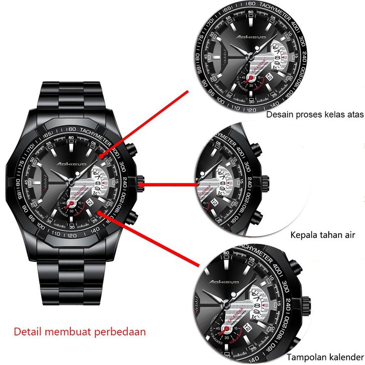 {DISKON} JAM TANGAN PRIA TERBAIK 2024 Aokeyo S001 Jam Tangan Pria Anti Air Original Luxury Stainless Steel(Free BOX)
