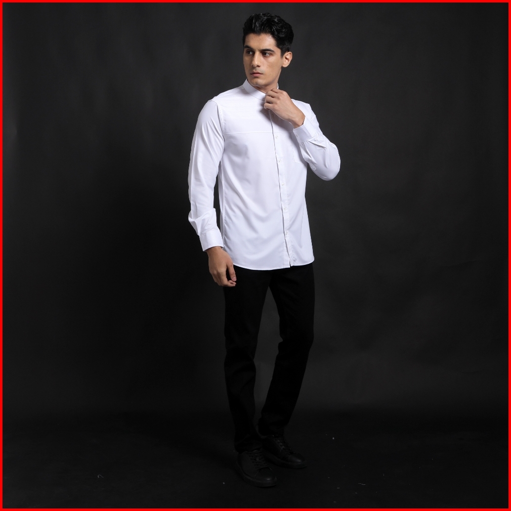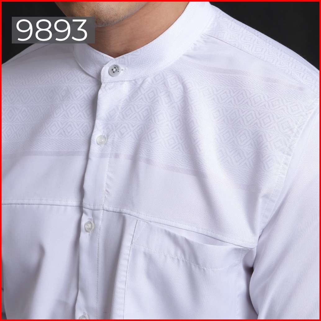 Casella Baju Koko Pria Lengan Panjang Premium Horizontal White Koko Elegant Ismail Lengan Panjang 9893 White