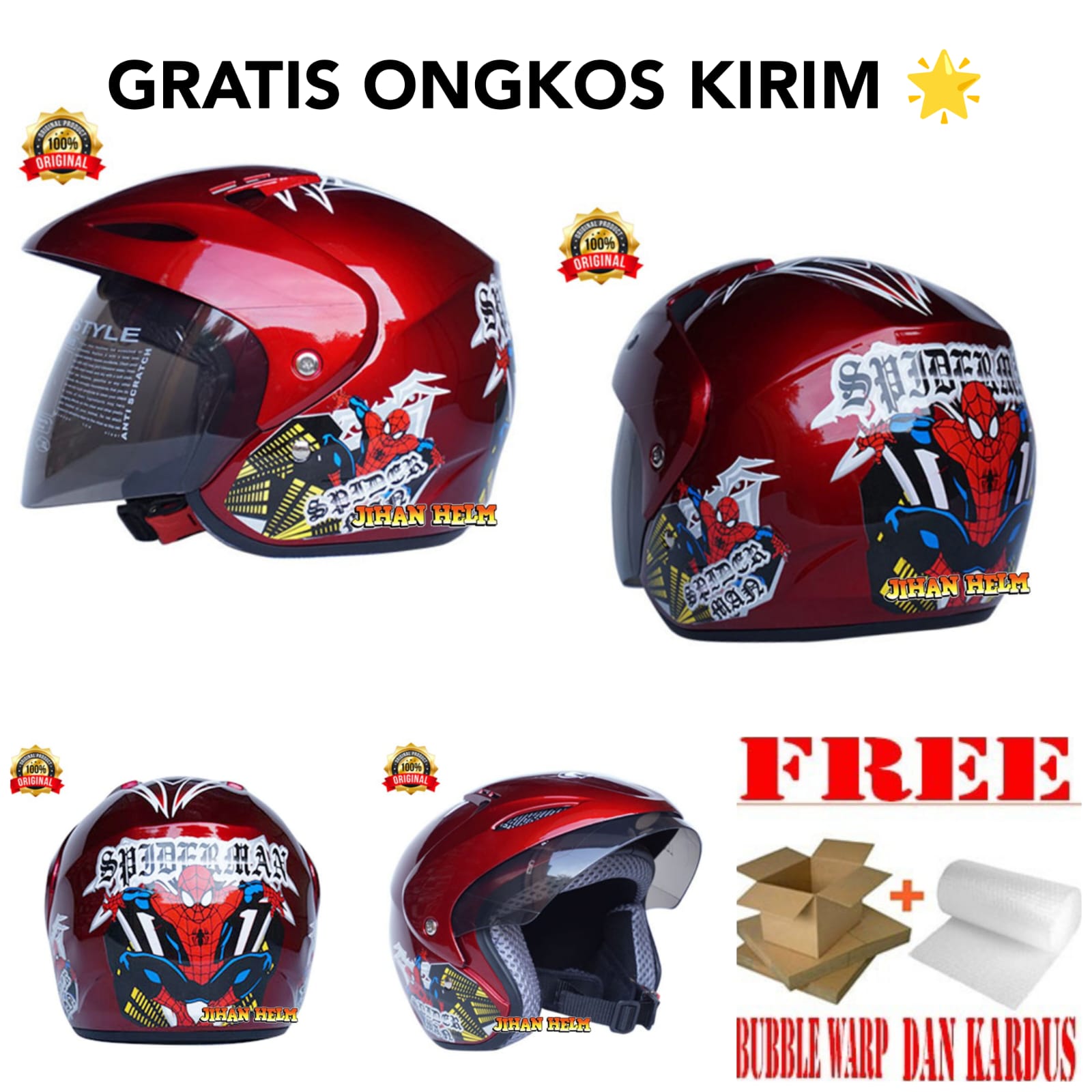 HELM JM JUNIOR PET ORIGINAL SNI / HELM JM JUNIOR JM ANAK RED MAROON SPIDERMAN TERMURAH