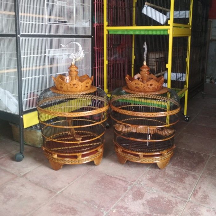 Kandang burung tekukur dan puter mahkota pelituran pernisan rotan