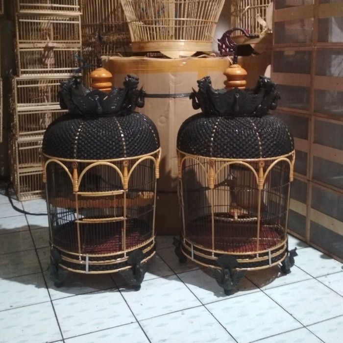 Kandang burung perkutut rotan mahkota PVC warna hitam black