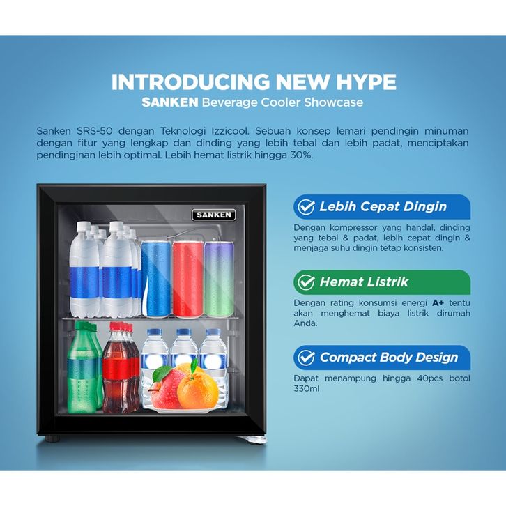 Sanken Showcase SRS-50R6 Minibar Mini Bar Kulkas Hotel Portable