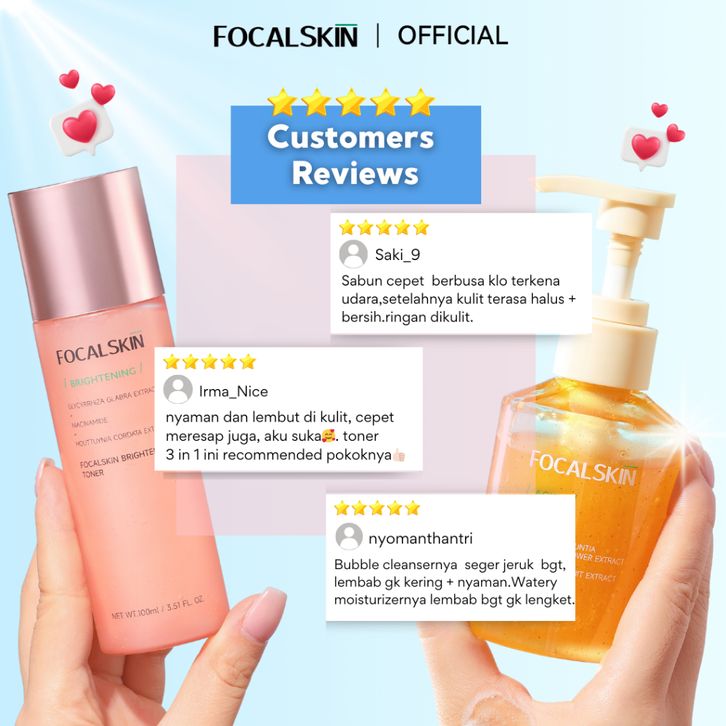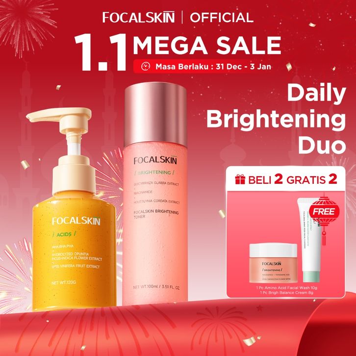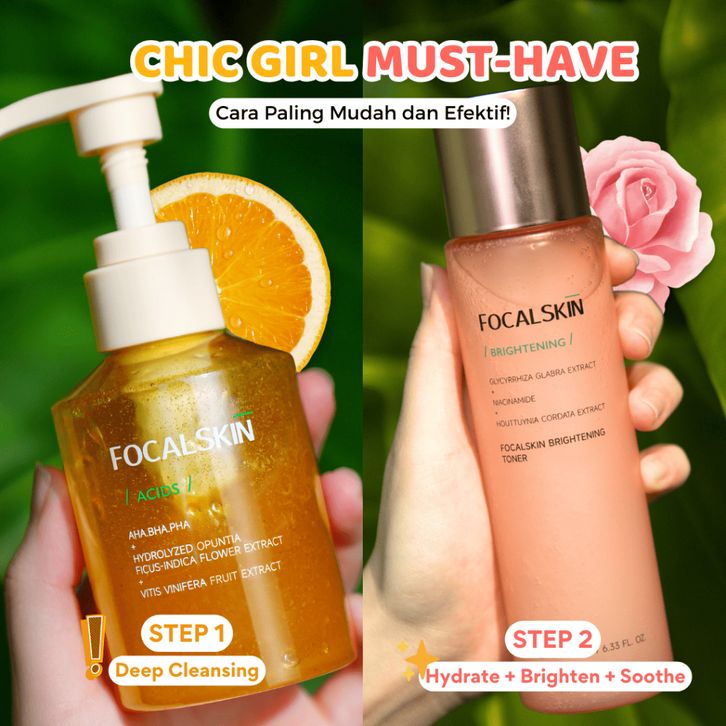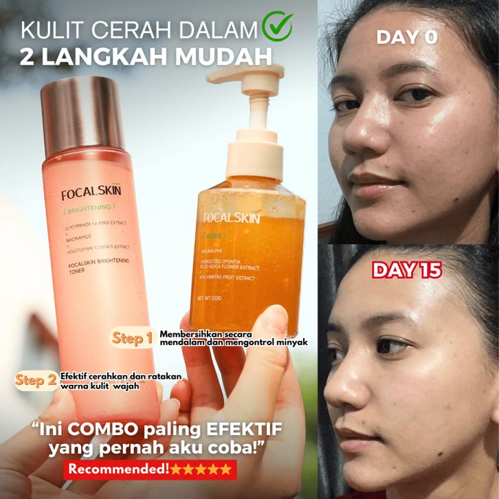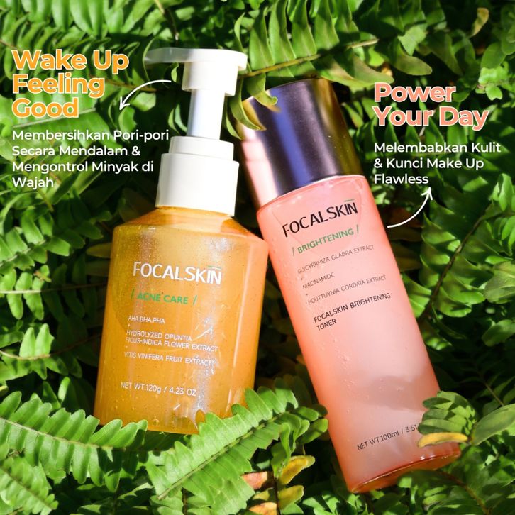 FOCALSKIN 2IN1 Paket Mencerahkan & Menghilangkan Komedo 3IN1 Toner Brightening + Bubble Cleanser AHA Facial Wash Sabun