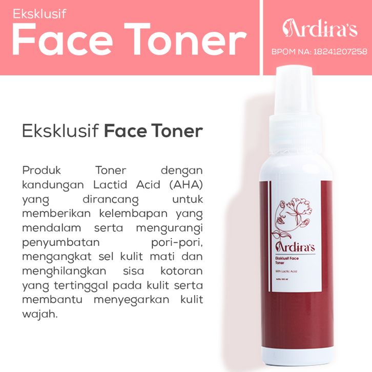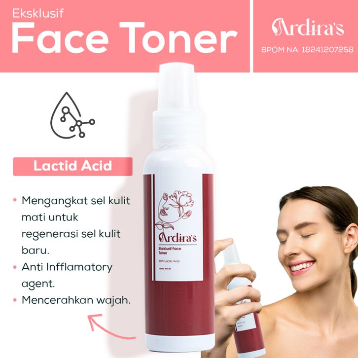 Ardira's Face Toner Eksklusif Lactic Acid Brightening Toner 100ml - Pencerah Wajah - Anti Kusam -Toner Untuk Kulit Norm