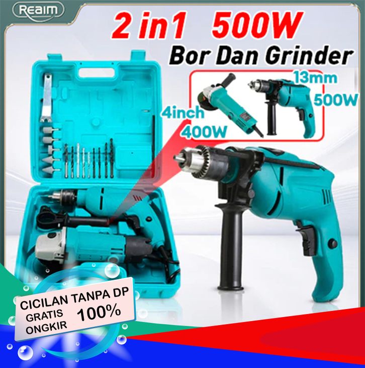 TANPA DP - REAIM GRINDER DAN BOR LISTRIK ANGLE SET BOR LISTRIK MURAH DRILL UNTUK MEMOTONG DAN MENGAMPLAS LOGAM, KAYU POW