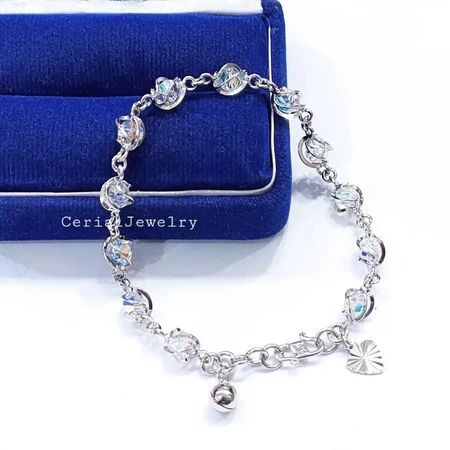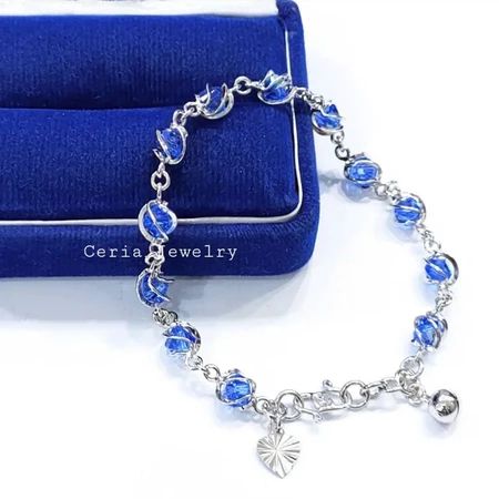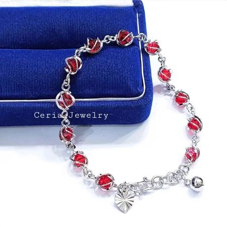 Gelangg Perak Asli Silver 925 Lapis Ems Putih Model Sangkar Permata Kristal - Perhiasan Perak Wanita