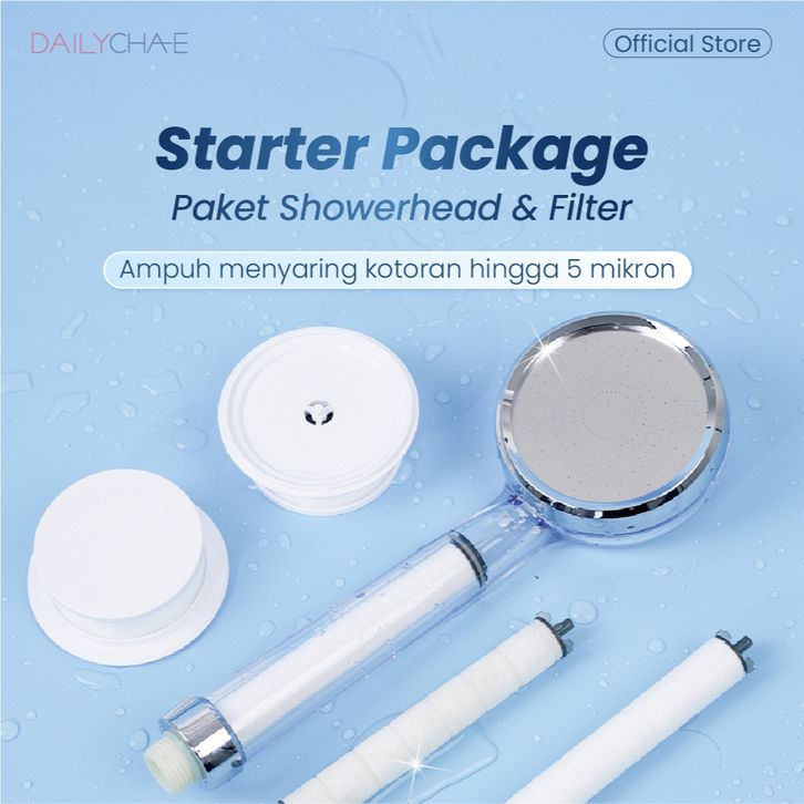 Daily Cha-E Starter Package - Paket Showerhead Kepala Shower & Filter Air untuk Shower Mandi / Penyaring Klorin & Kotora