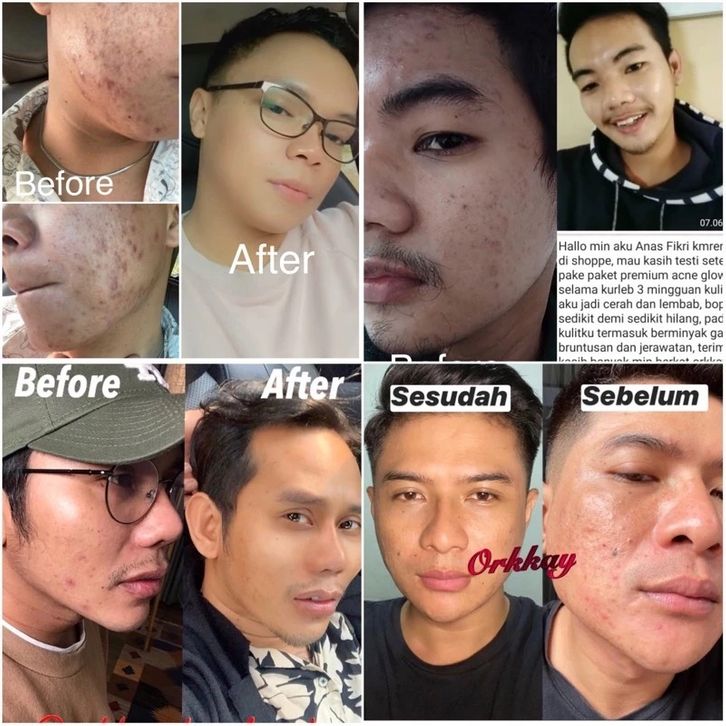 PAKET PREMIUM ACNE GLOW & PAKET PREMIUM WHITE GLOW ORKKAY [ SKINCARE BPOM CREAM PEMUTIH WAJAH MOISTURIZER