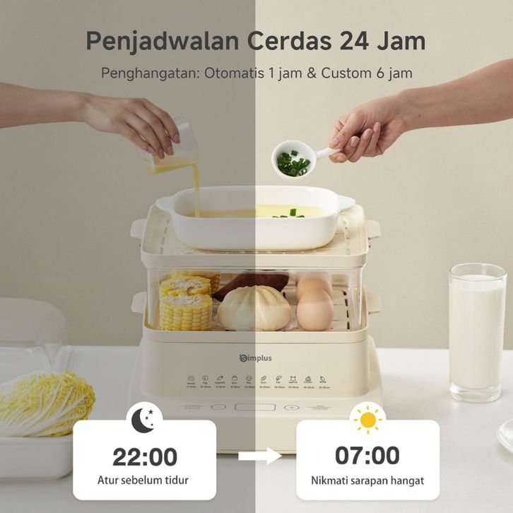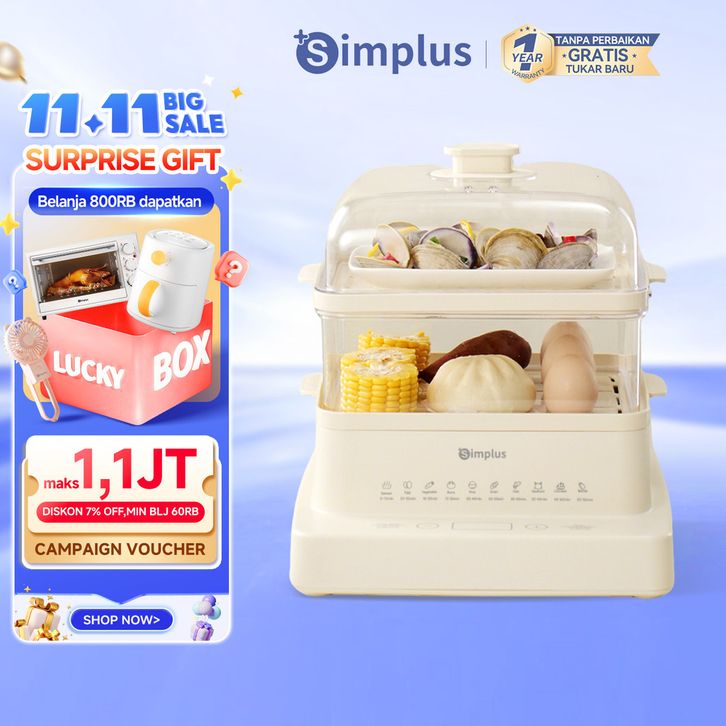 Simplus Kukusan Listrik Low Watt 9L Electric Steamer Multifungsi Mengukus Telur, Mengukus Ikan