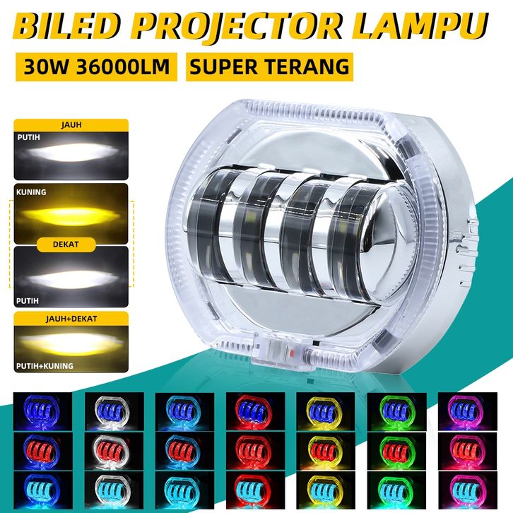 LAMPU BILED TEMBAK LED PROJIE BILED & SHROUD 8D 4 LENSA DENGAN DEVIL EYE ORIGINAL SUPER TERANG HIGH LOW 30WATT DC12V-85V