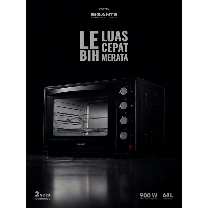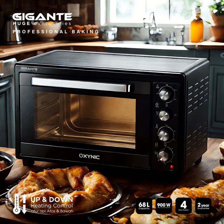 Oven 68 Liter Suhu Atas Bawah Bisa Set Terpisah 900W 4 Rack free 7pcs aksesoris OXYNIC gigante