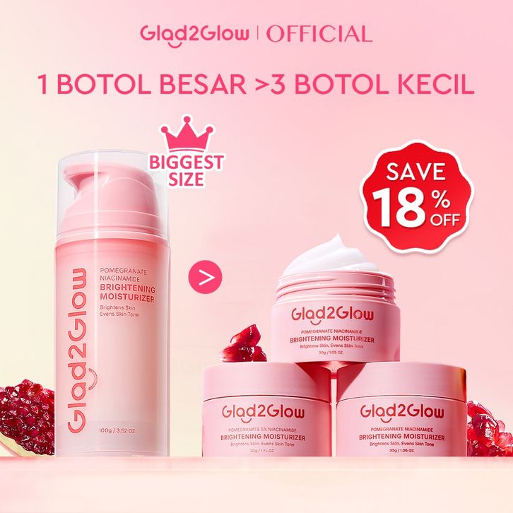 Glad 2 Glow Official Glad2Glow Moisturizer Big Size 100g Brightening Moisturizer Pomegranate Niacinamide Extract Hitam
