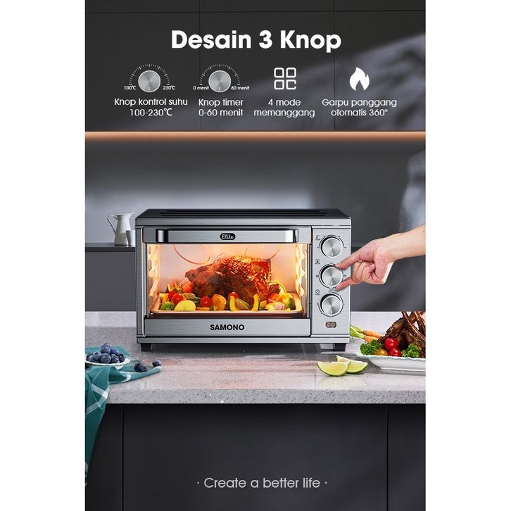 oven listrik best seller SAMONO OVEN LISTRIK LOW WATT 30 LITER STAINLESS SILVER PEMANGGANG SERBAGUNA SW-EOS30