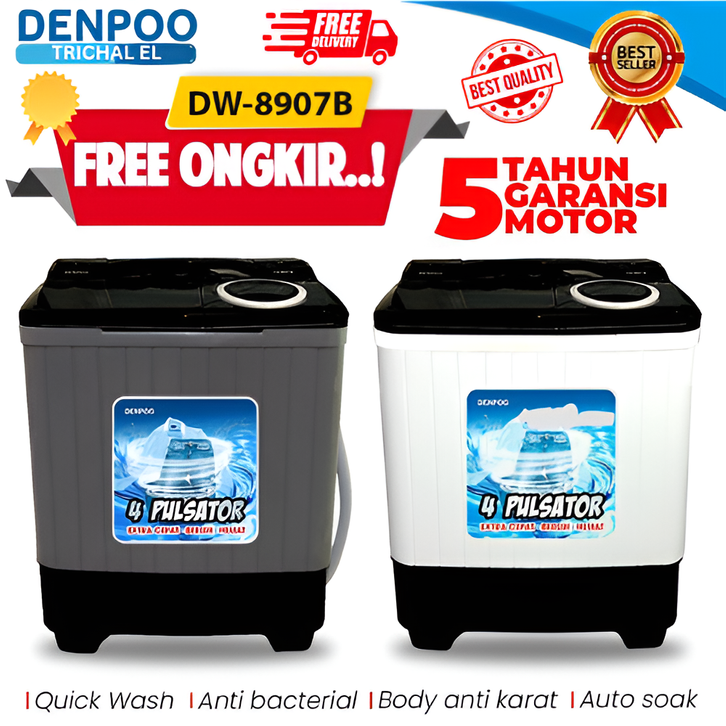 MESIN CUCI 2 TABUNG DW 8907B 8KG DENPOO