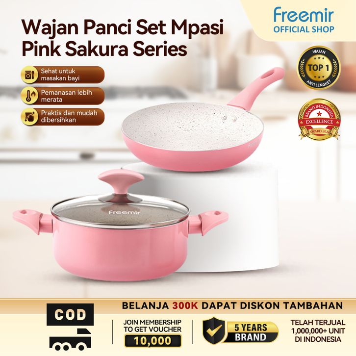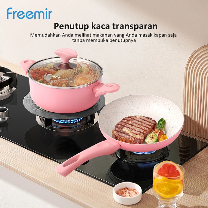 freemir Set 2 Wajan Panci Sakura Series dengan Tutup Kaca Multifungsi Anti Lengket
