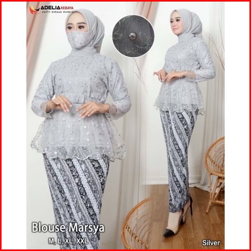 Ak - Setelan Kebaya Blouse Marsya - Baju Pesta Kebaya Modern - Pakaian Wisuda Pagar Ayu Kondangan