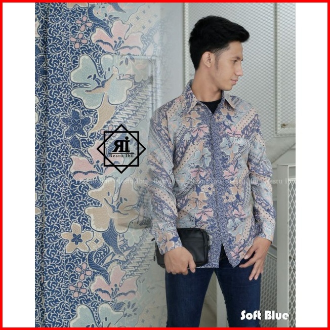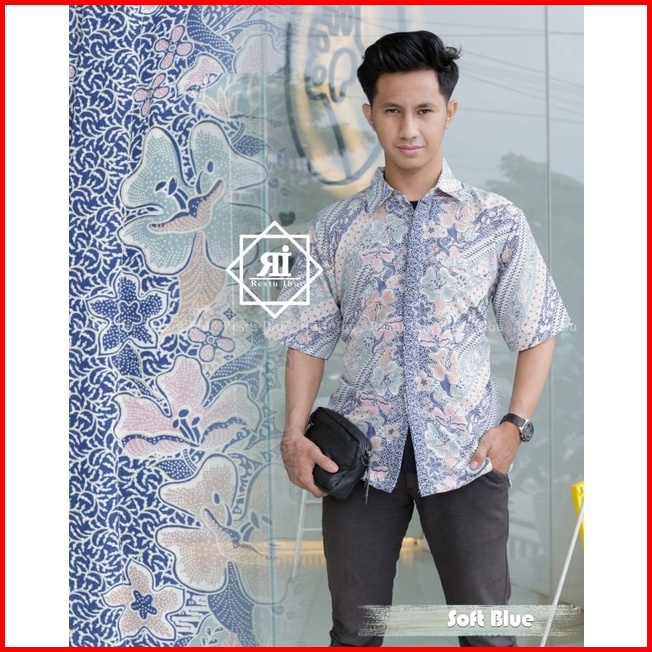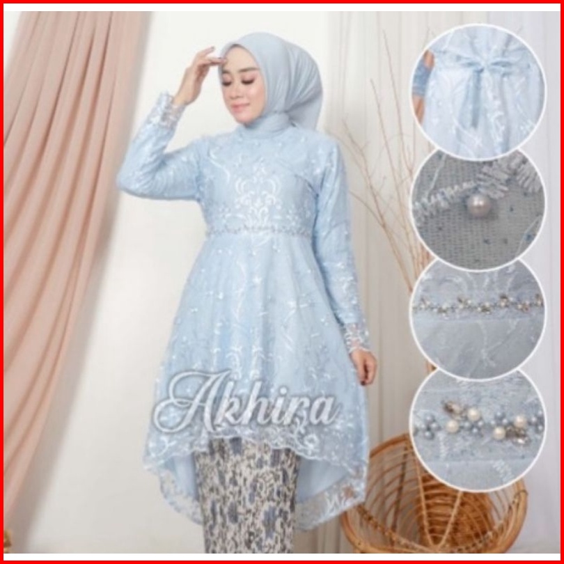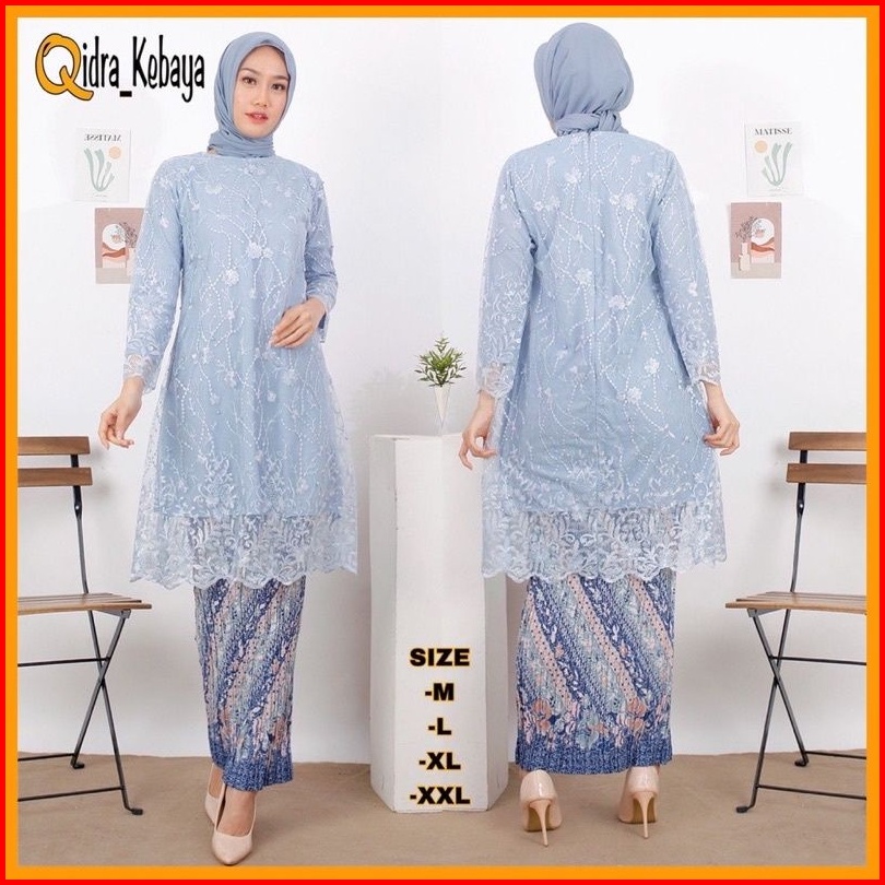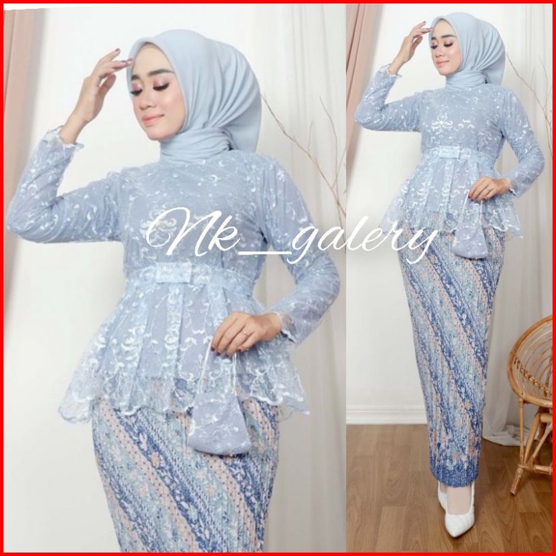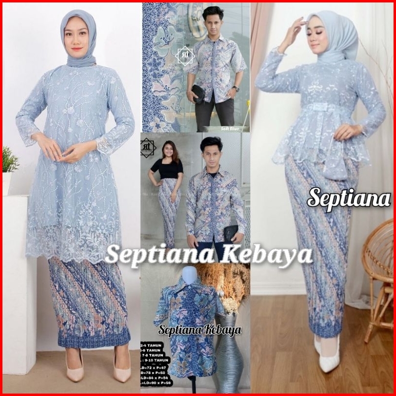 Sk- Baju Kebaya Couple Batik Lamaran Modern Baby Blue - Kebaya Modern Tunangan - Couple Kemeja Batik Dan Kebaya