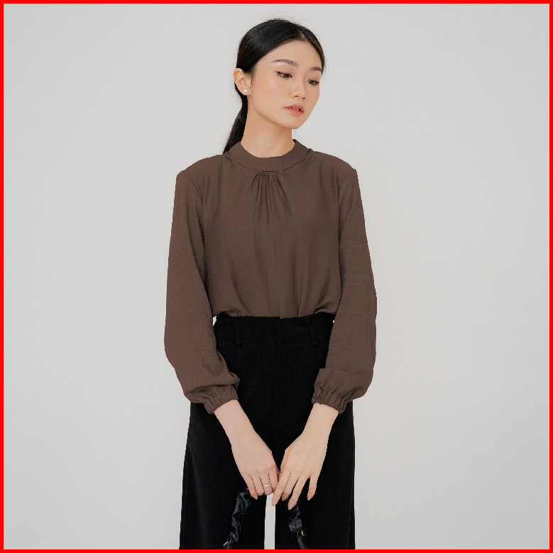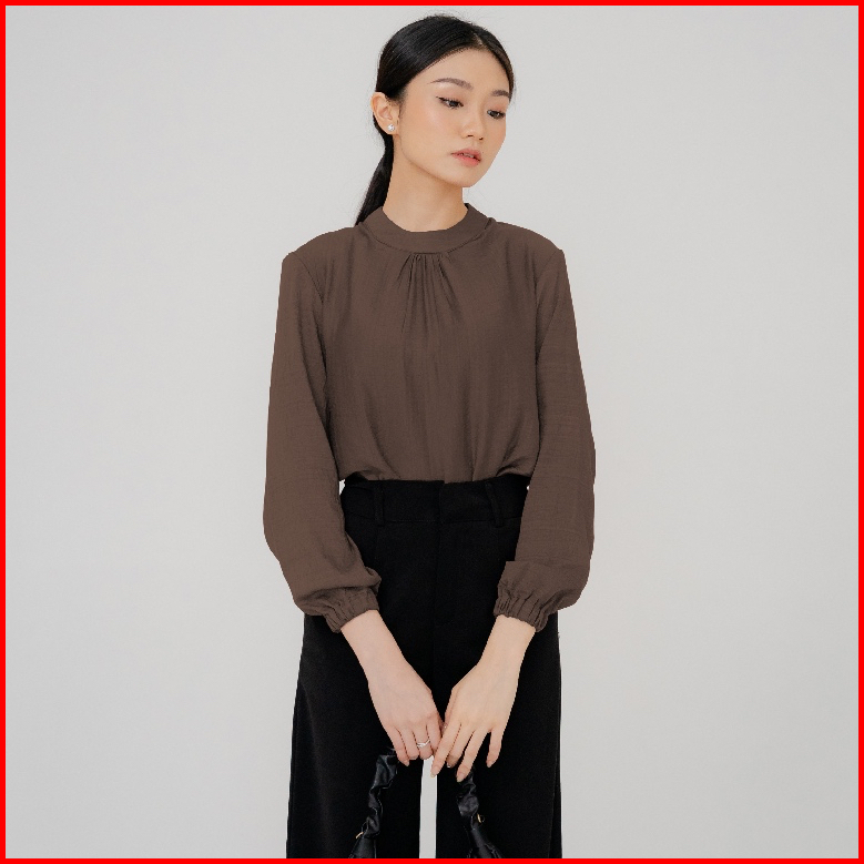 Merlyn Blouse Kemeja Atasan Lengan Panjang Waanita Long Sleeve Round Collar Woman
