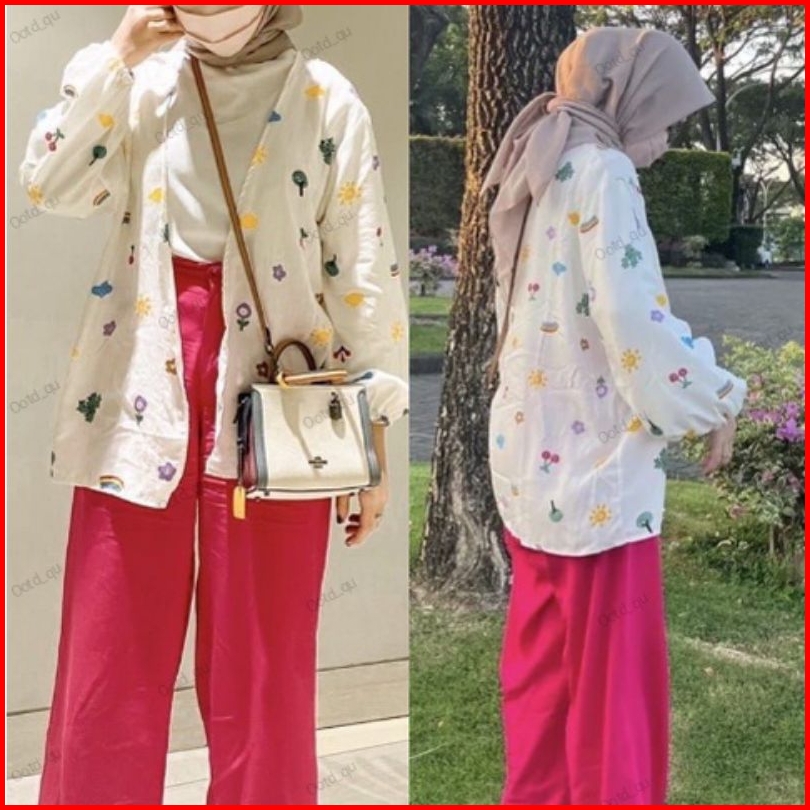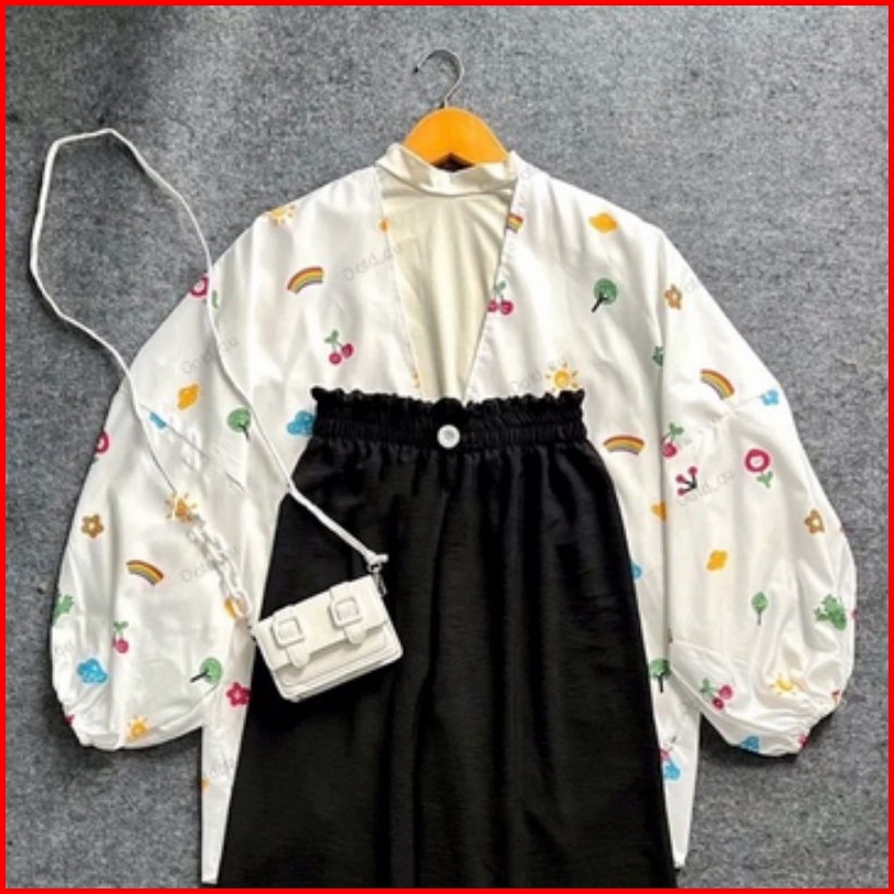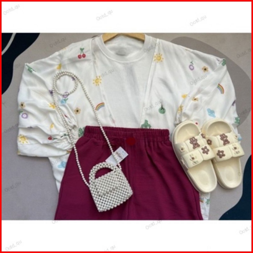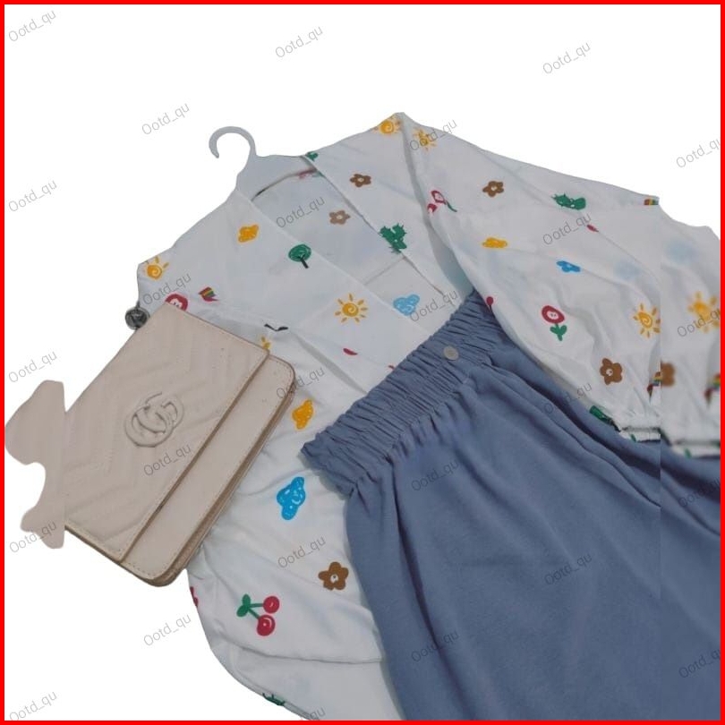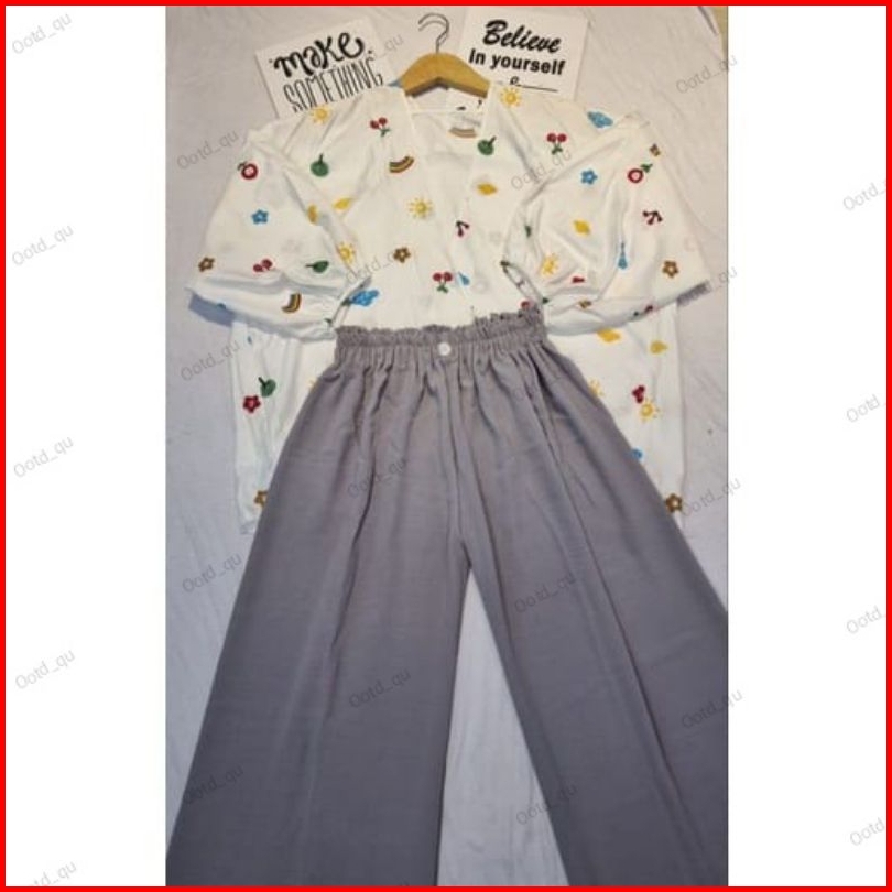 Setelan Baju Outer Kiyowo Dan Kulot Kerut Susun Kancing Pinggang Karen Wanita Remaja Dan Anak Perempuan
