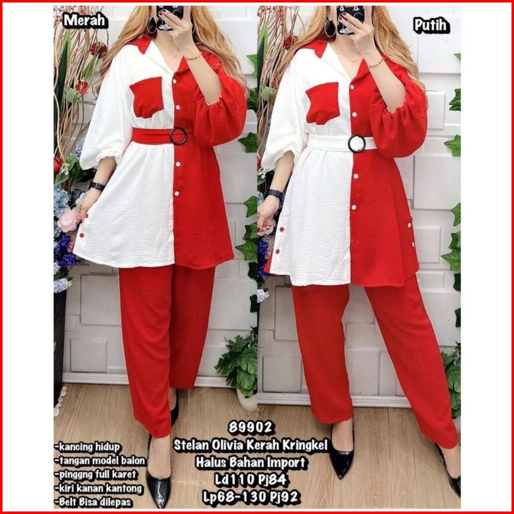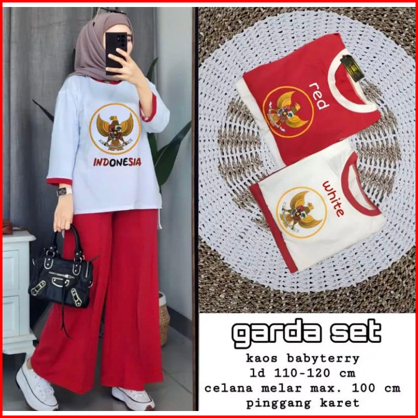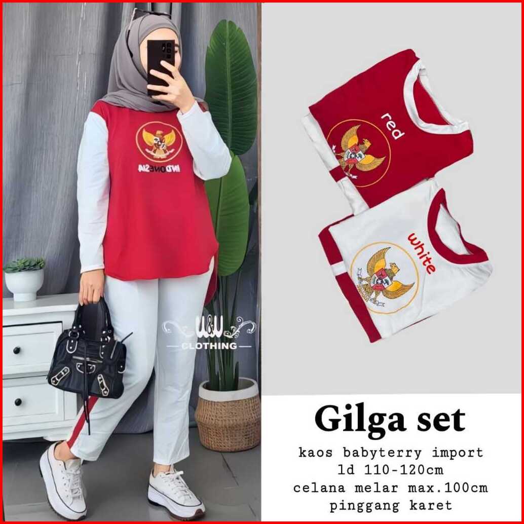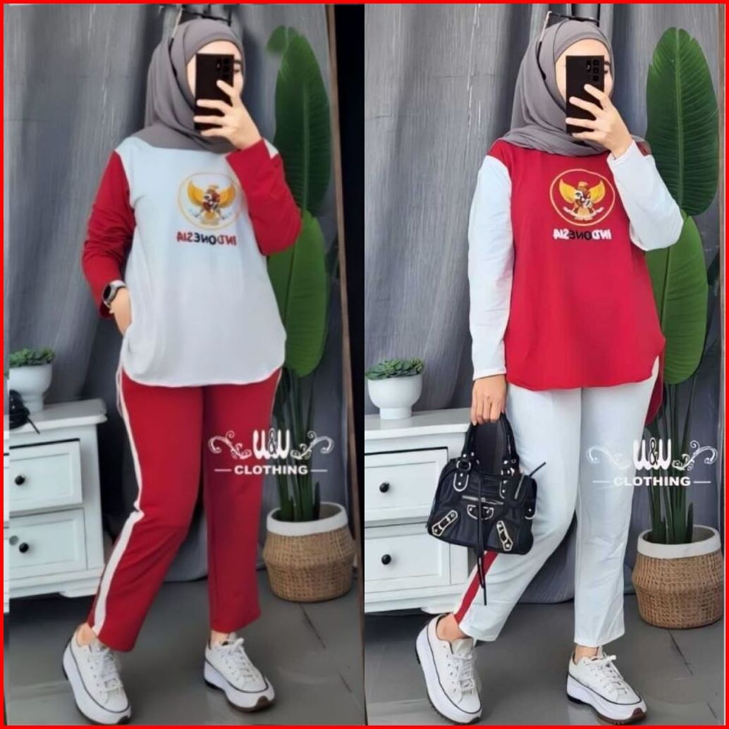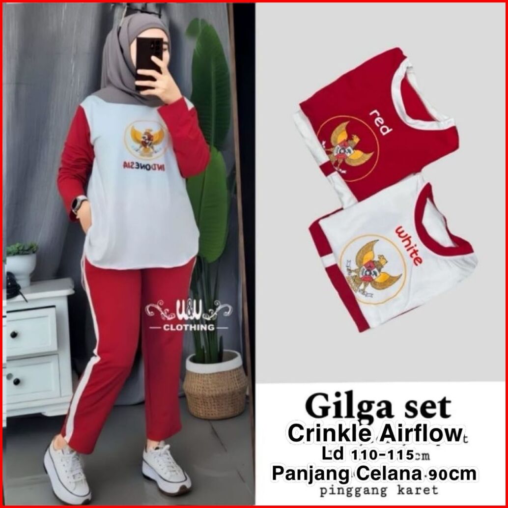 Setelan Merah Putih Gilga Set Agustusas Merdeka Set Dirgahayu Indonesia 1945 - Baju Seragam Senam Crinkle Wanita