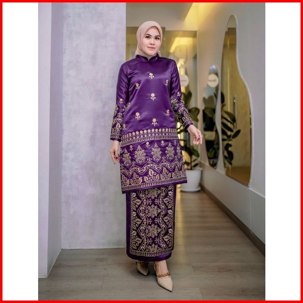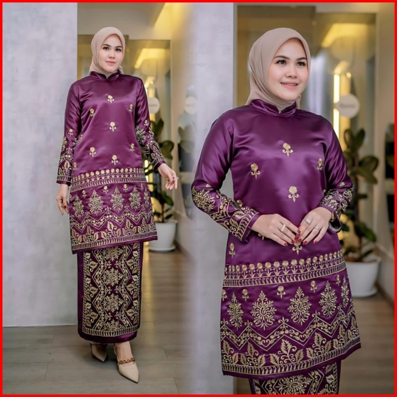 Setelan Tunik Bordir Manual Baju Bridal Baju Pesta Baju Adat Set Baju Kurung Kebaya Malaysia Kebaya Melayu