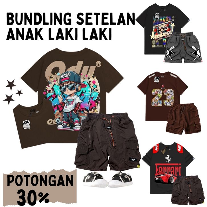 FREE ONGKIR Paket Bundling Hemat Setelan Anak Laki Laki Baju Distro Setelan Baju Anak Dan Celana Cargo 3-12 Tahun