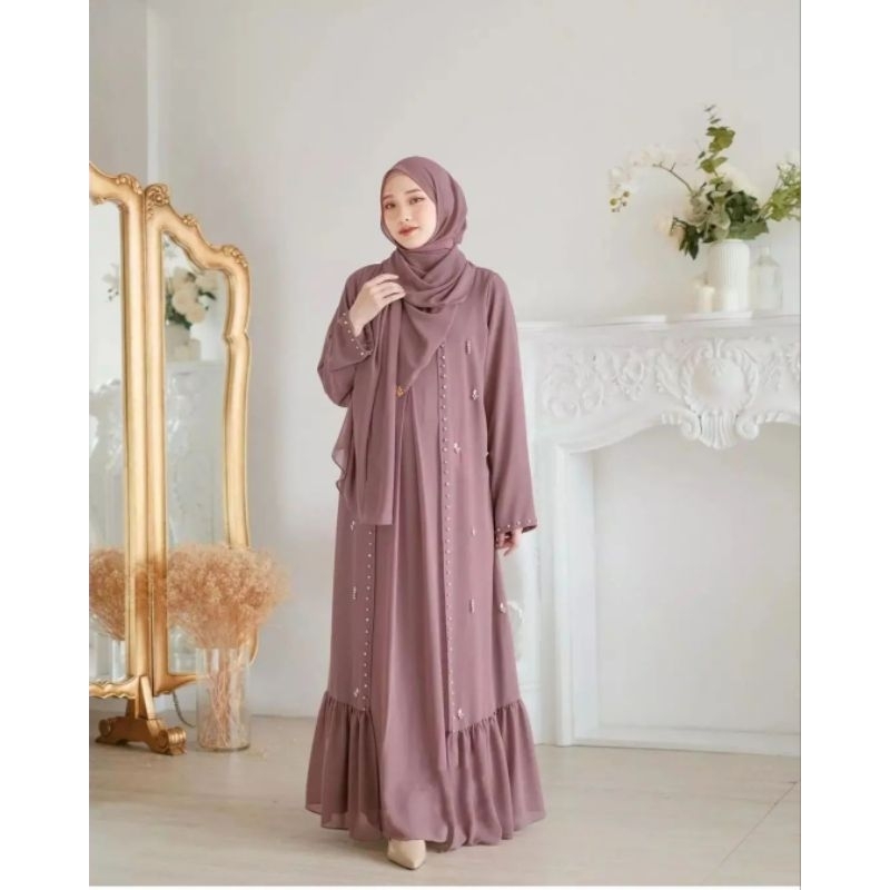 ABAYA SYAHIRA SET GAMIS PESTA WANITA KEKINIAN BAHAN CERUTY BABY DOLL APILIKASI PAYET MUTIARA
