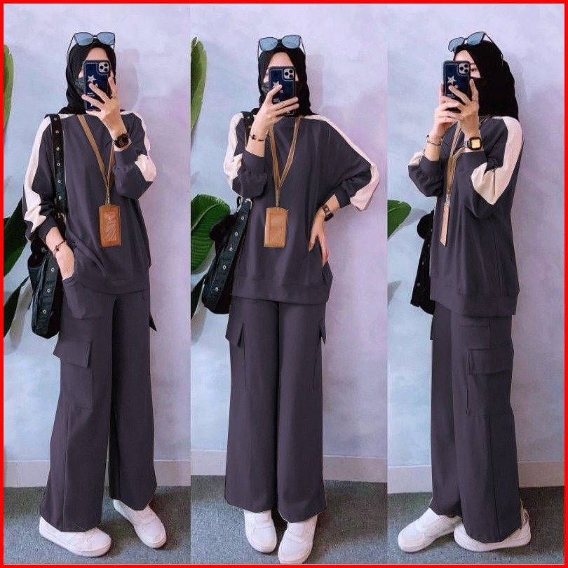 Set Cargo Setelan Celana Cargo List Tangan One Set Training Baju Celana Wanita Olahraga Sporty Bes