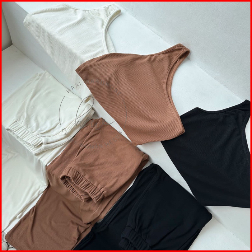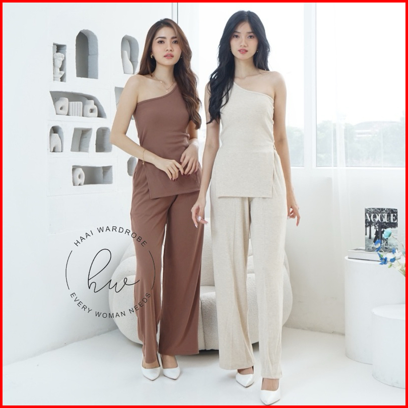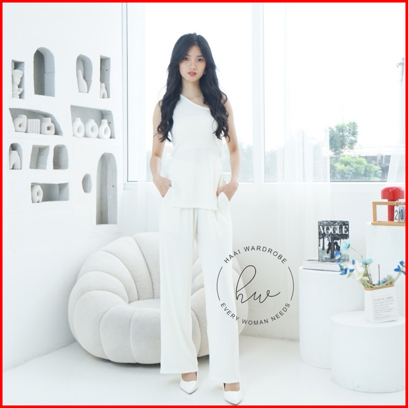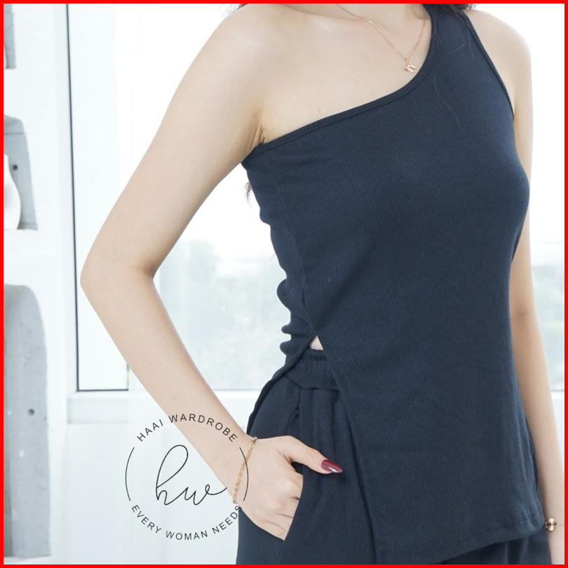Hw - Arla Set - 104 - Setelan Baju Celana Set Tanktop Celana Panjang One Shoulder Tarzan Top