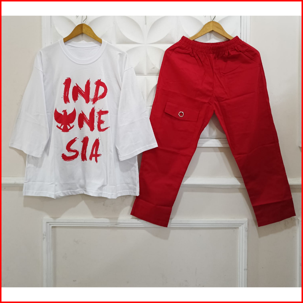 Arricha Set Setelan Baju Wanita Edisi Kemerdekaan Setcel Kaos Oversize Saku Ring By Jevanni Atasan Oversize Ld 120 Matt