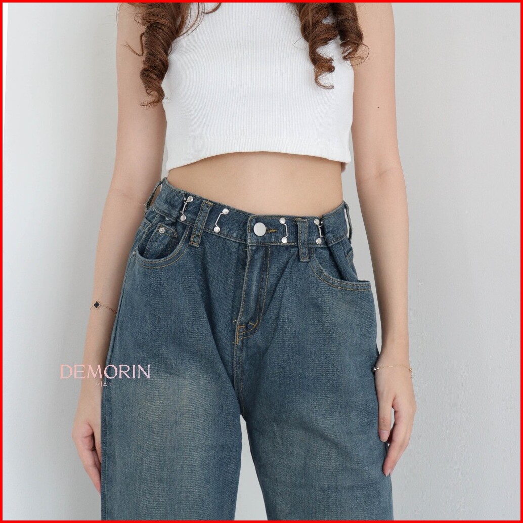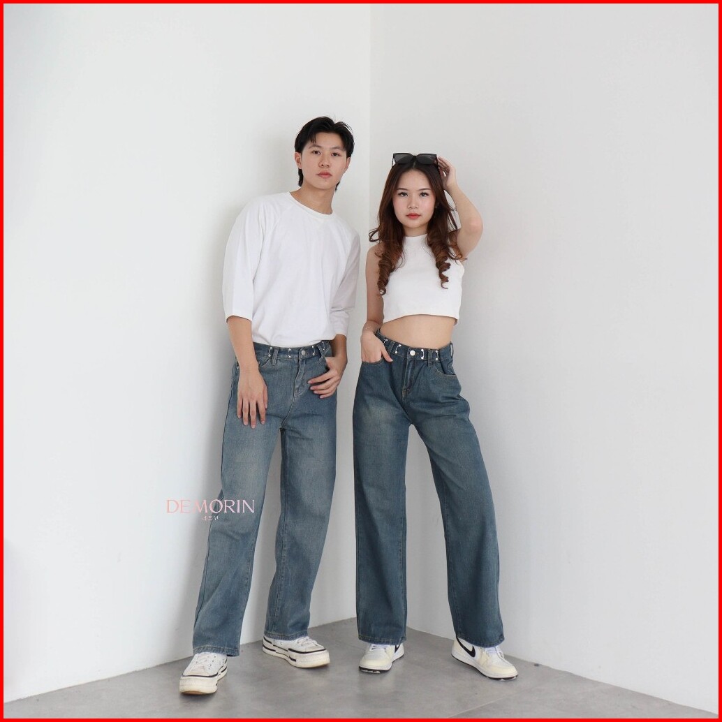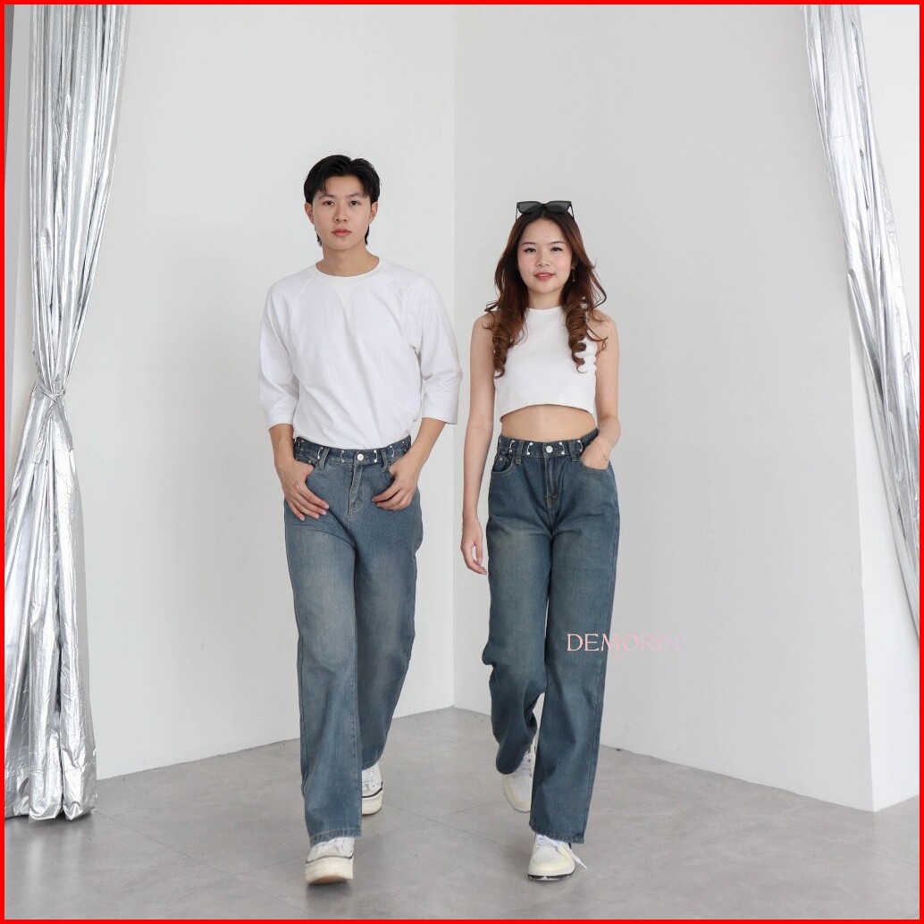 Demorin Celana Panjang Jeans Unisex Loose High Waist Denim Baggy Jeans Kait Pengecil Pinggang X19